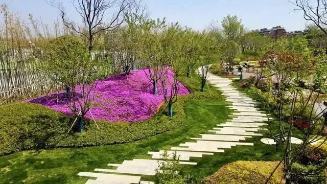 2. 花期丰富:2-4月繁花次第绽放,3月茶梅、早樱相映,中下旬樱海花溪成核心美景,搭配紫叶李、二月兰,4月紫藤、绣球接续浪漫,花卉保留原生状态,自然韵味十足。