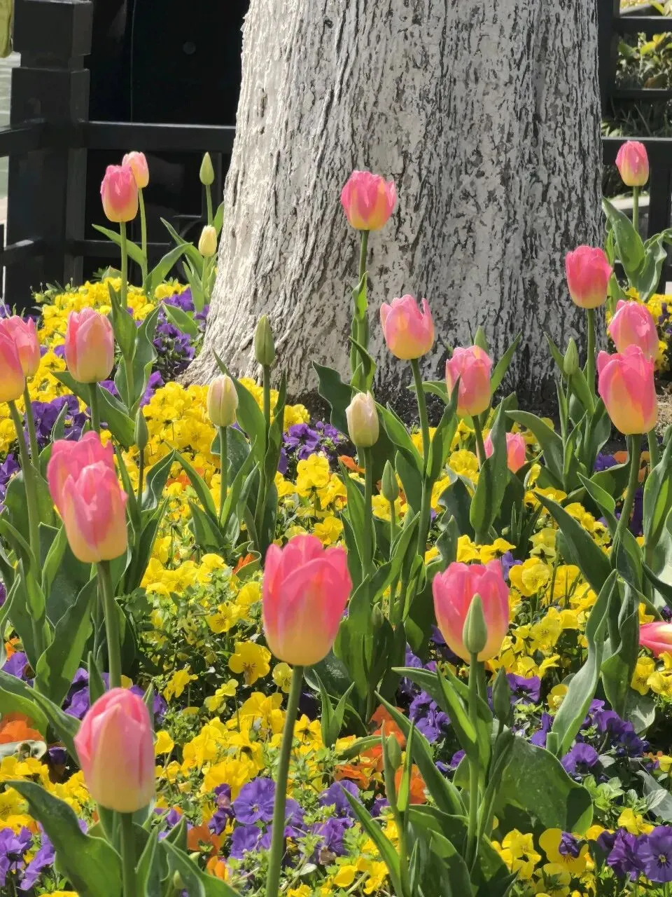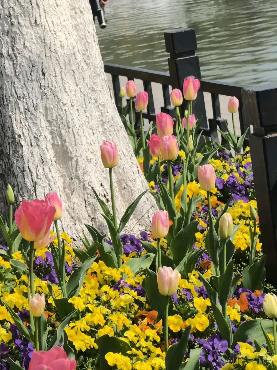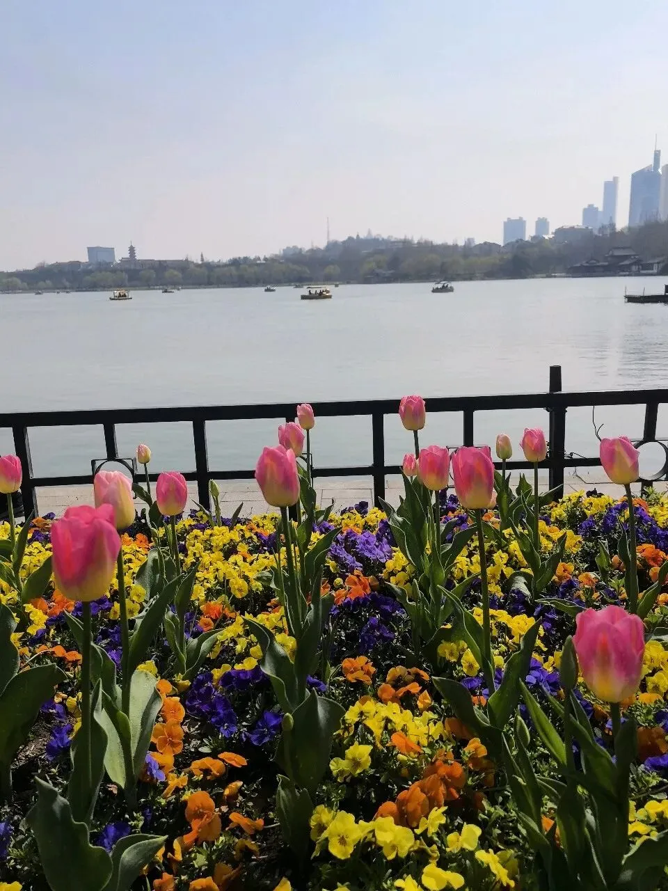 春天的郁金香总是令人沉醉,玄武湖畔那抹渐变粉,美得高级又含蓄,含苞待放的姿态最是迷人。从玄武门入口直行约50米,路旁绿化带里便悄然绽放。湖光映衬下,郁金香更显梦幻,远方的紫峰大厦也为这画面添上一抹都市的诗意。