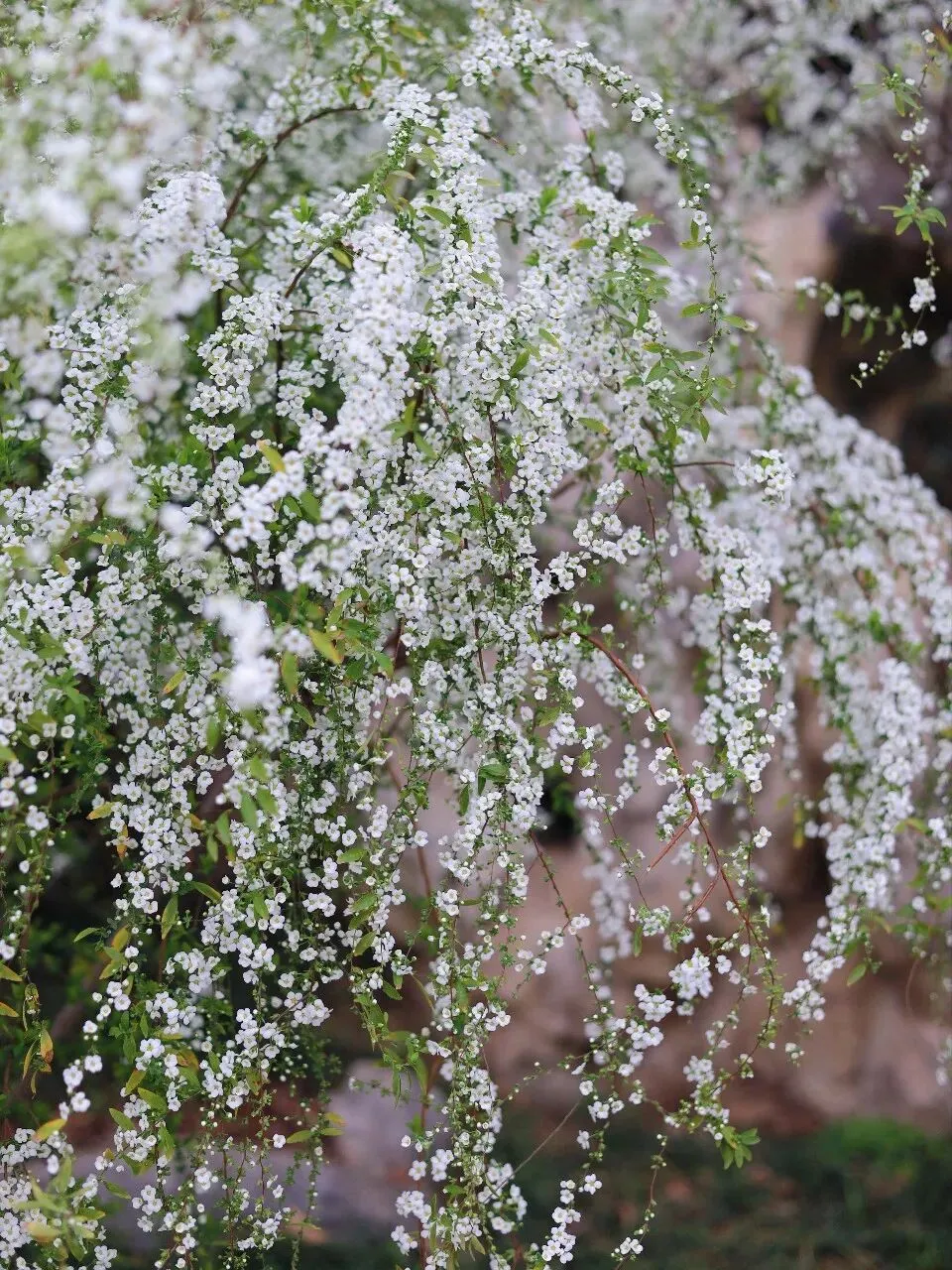 看完郁金香,往前步入环洲。假山旁的雪柳已然盛放,如雪似雾,洁白轻盈。近日天气晴好,雪柳更添几分出片的仙气。周末游人如织,若想独享这份静谧,不妨清晨或工作日前往。假山、流水、雪柳交织,素雅的花枝更显韵味悠长。