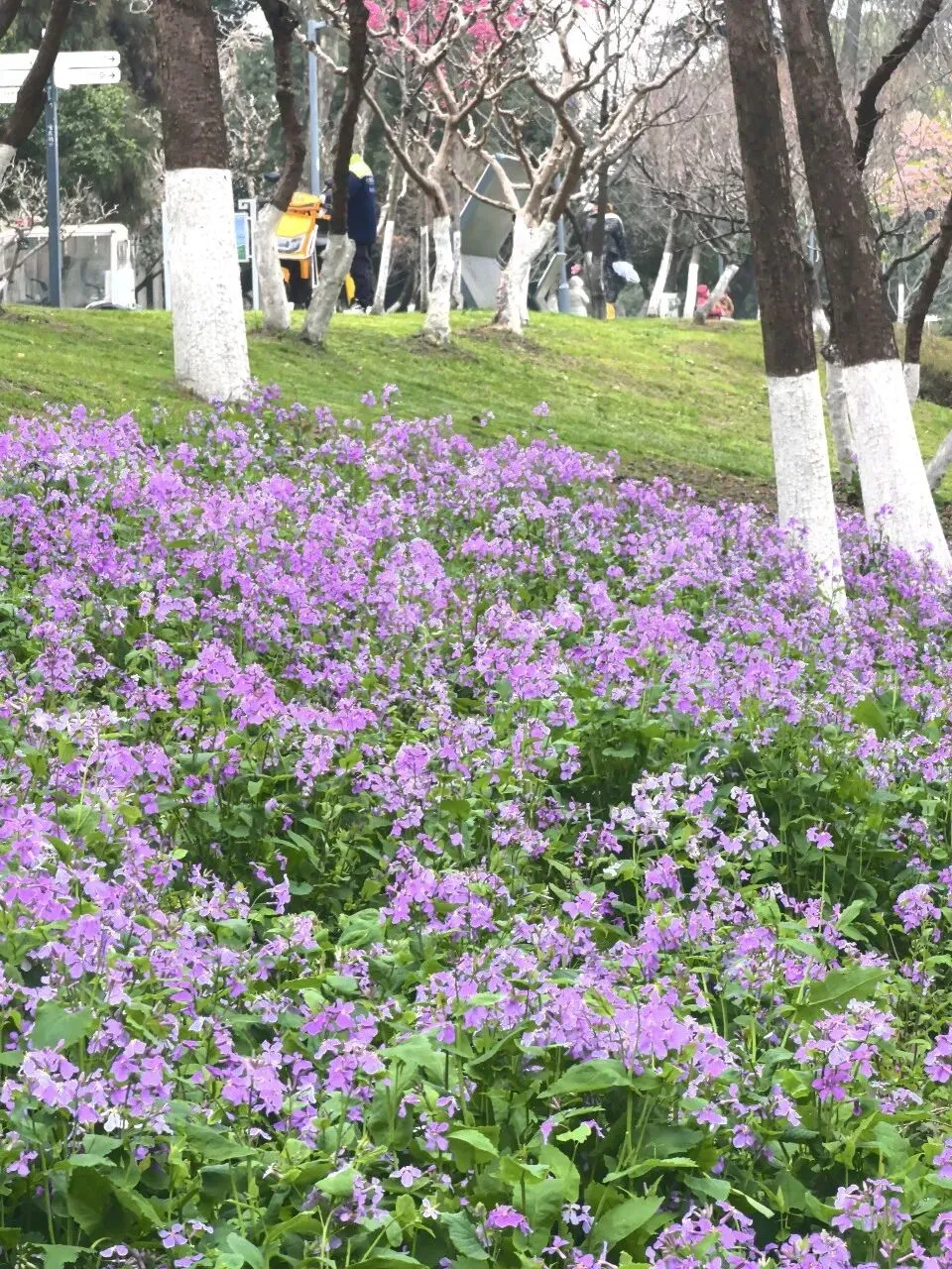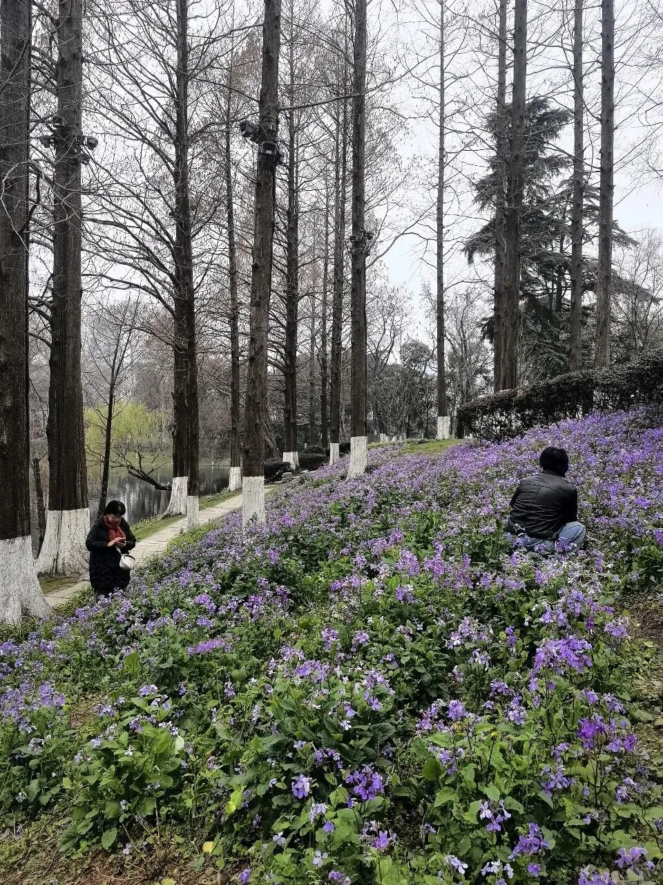 樱洲山坡上,二月兰开得正好,紫雾般的花海令人流连。穿一袭白裙,置身其间,随手一拍便是春日大片。
