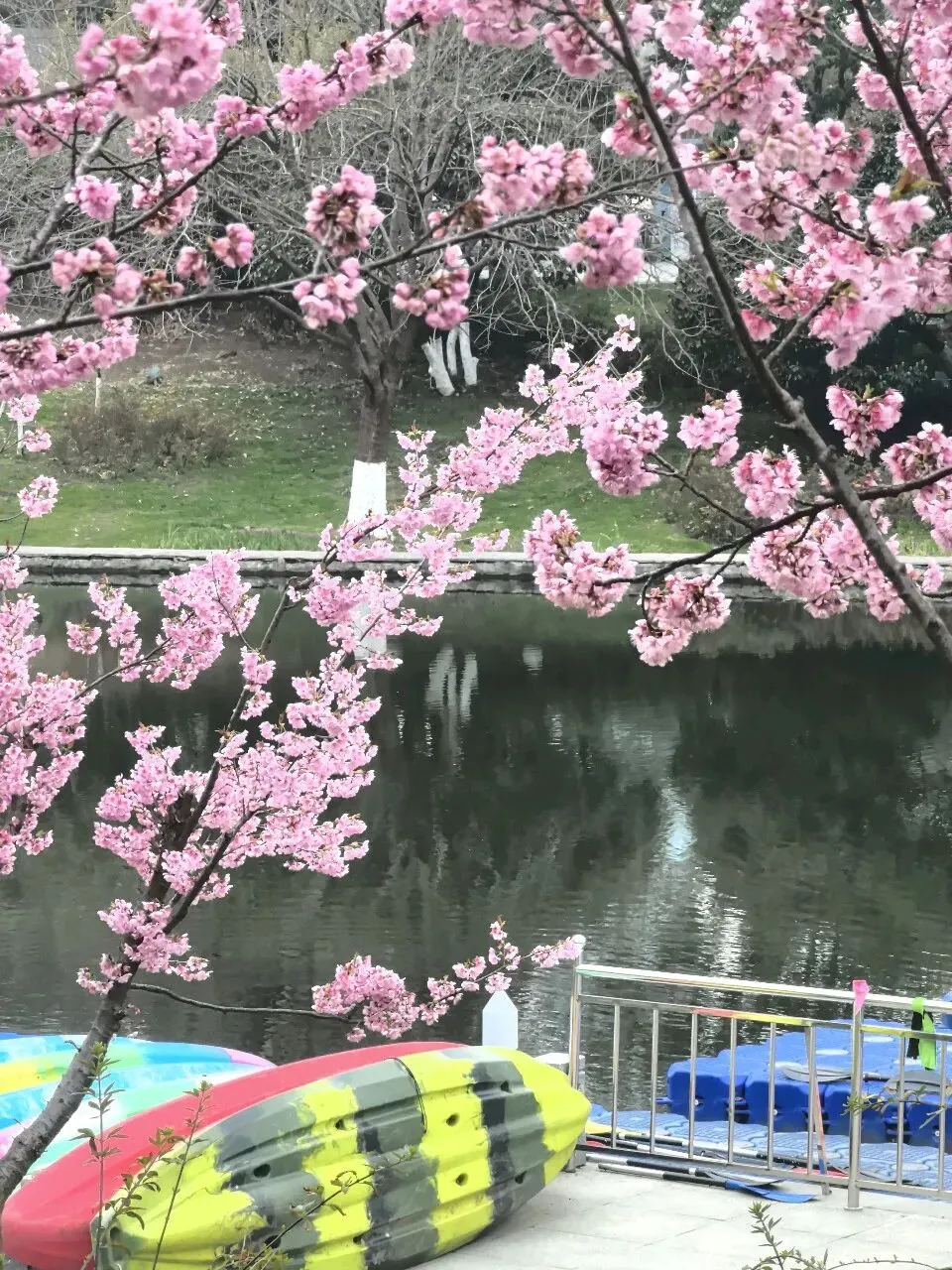 樱洲的另一重惊喜,是湖畔的樱花,已灿若云霞,汇成粉色海洋。微风过处,落英缤纷,浪漫至极。
