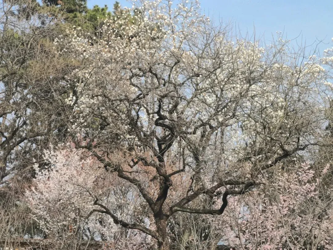 玉兰旁,一树白李开得正盛,远远望去如银花簇簇,格外夺目。风过时,花瓣轻舞,连阳光都似在指尖跃动。海棠也正值佳期,零星点缀其间,等你偶遇、探寻。