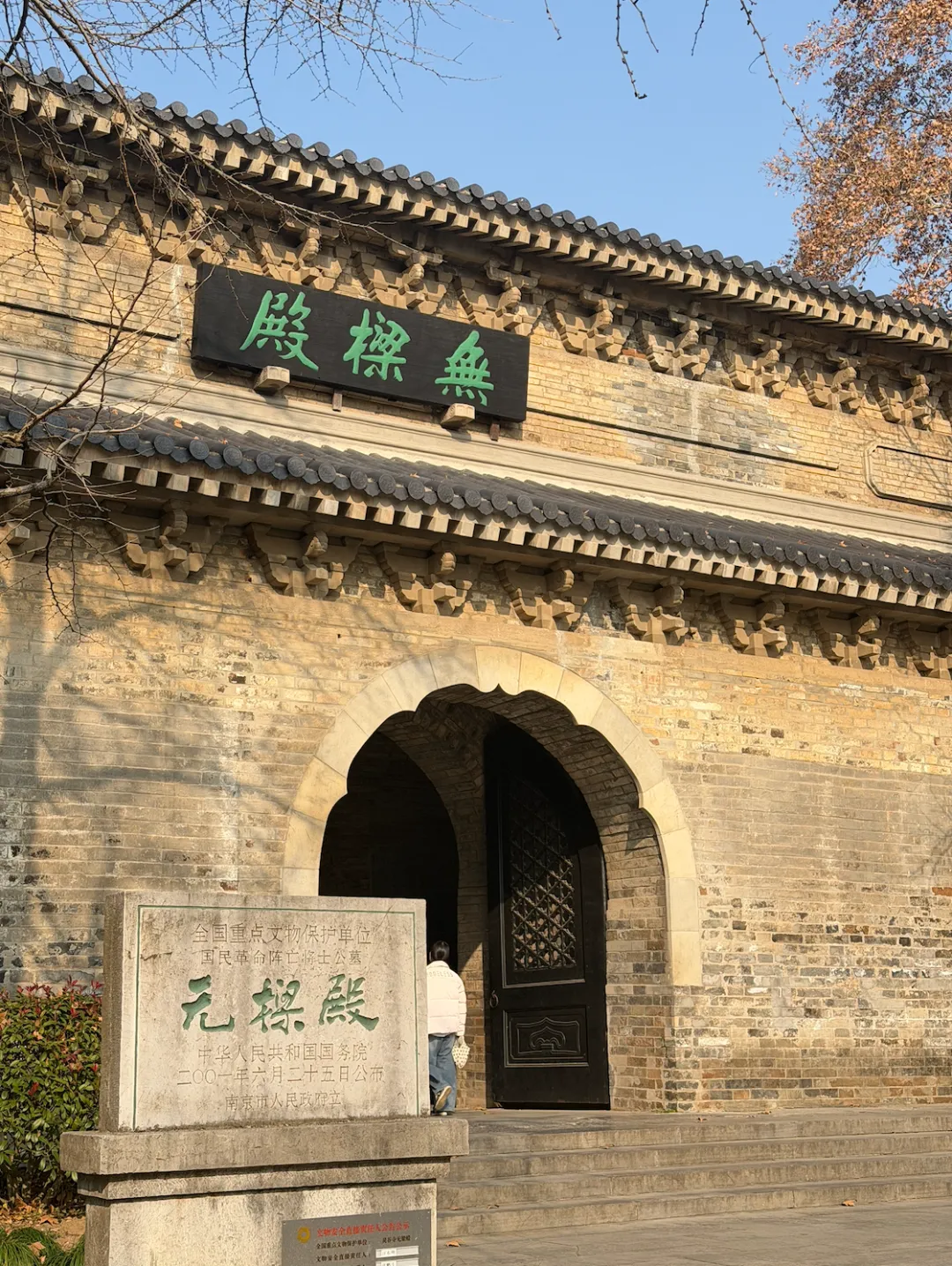 去明孝陵之前,先去酒店门口的明故宫东华门遗址打个小卡。600年前的城门楼子就那么安安静静地立于闹市中,从城楼门洞下穿行而过,古今穿越感一秒得到!现已斑驳的青砖墙当年,八成也是朱红色的吧?