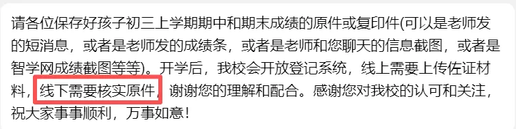 除了姓名、初中学校、手机号等基础信息外,最关键的就是初三、初二几次大考的成绩,一般学校主要看九上期中、期末和年级排名,一模如果来得及也会参考,有些学校还要求八上、八下的期中、期末成绩。