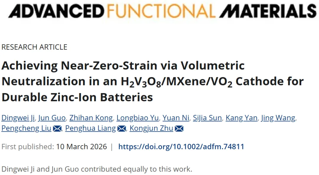 南京航空航天大学朱孔军&东南大学「国家高层次人才」刘鹏程&湖州学院梁彭花最新AFM | 体积中和策略构筑近零应变锌离子电池正极!