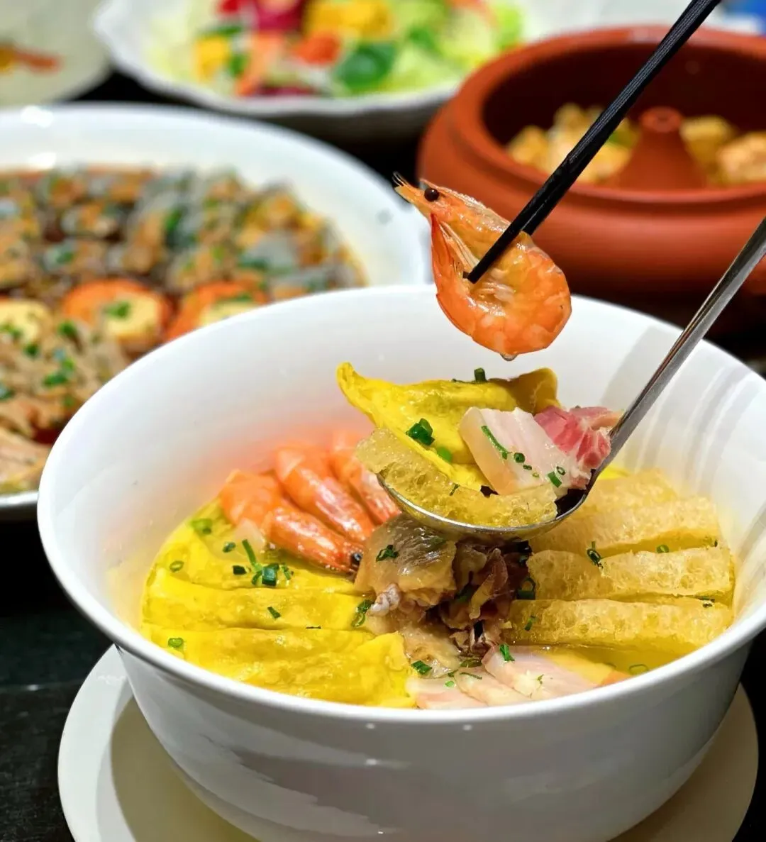 “李白蟹·蟹黄面·临江餐厅”蟹黄面鲜掉眉毛,蟹肉粒超多,还能免费续面,甜品也超赞