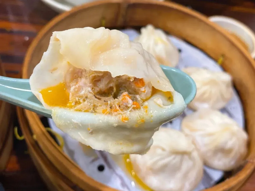 “莱莱小笼”皮薄汤汁丰盈,蟹粉鲜甜浓郁,外脆里嫩的炸猪排是隐藏彩蛋