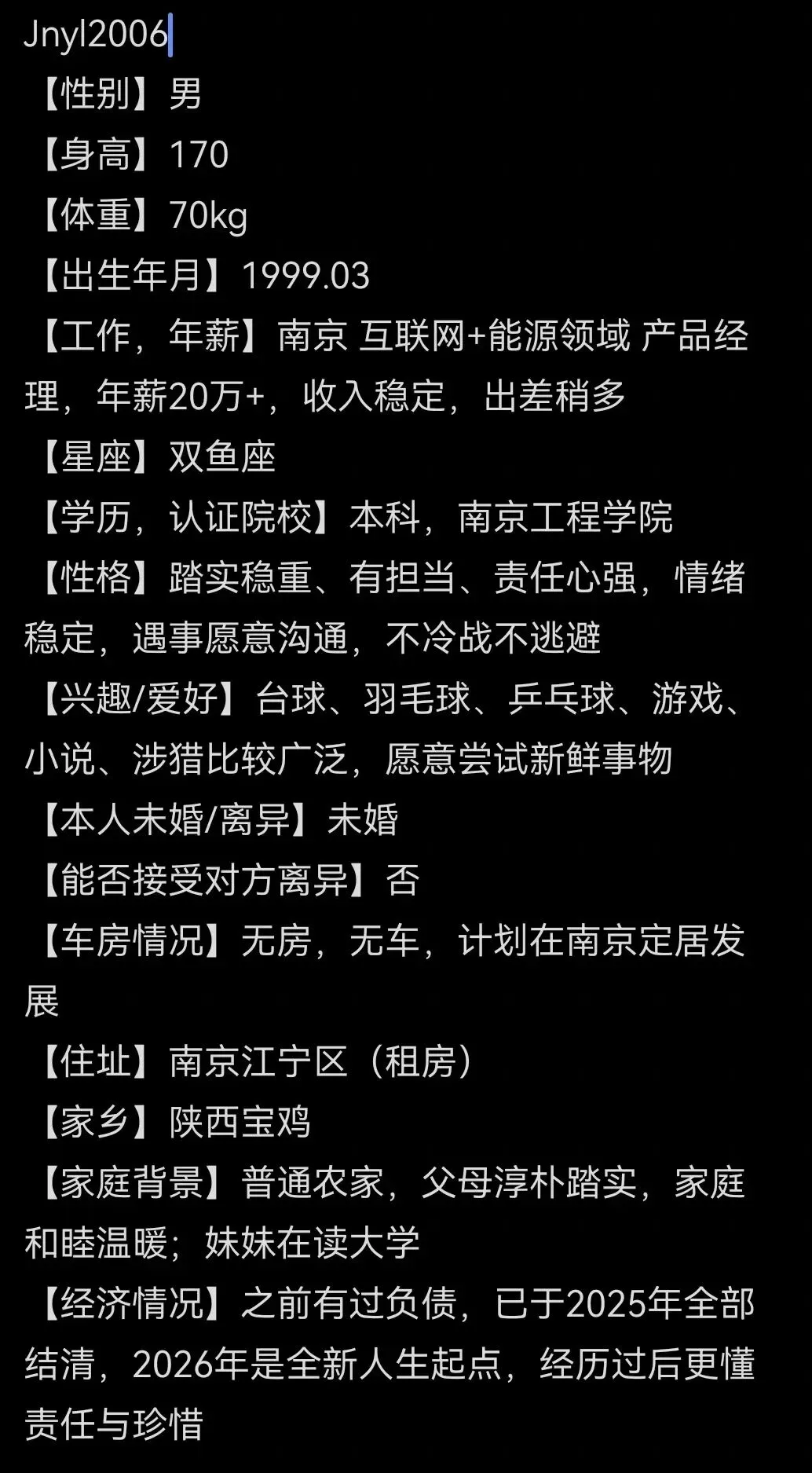>南京脱单|99年,男,身高170,本科学历,产品经理工作,陕西人在南京,目前在江宁区