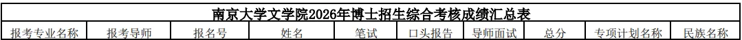 附件:南京大学文学院2026年博士招生综合考核成绩汇总表