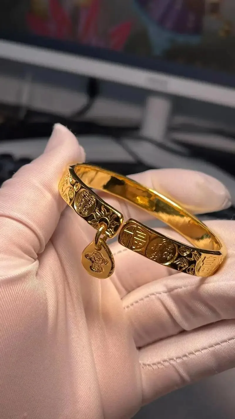 ——咬咬牙 把攒 的钱集中起来 买了人生第一只足金素圈镯 大概 20克上下