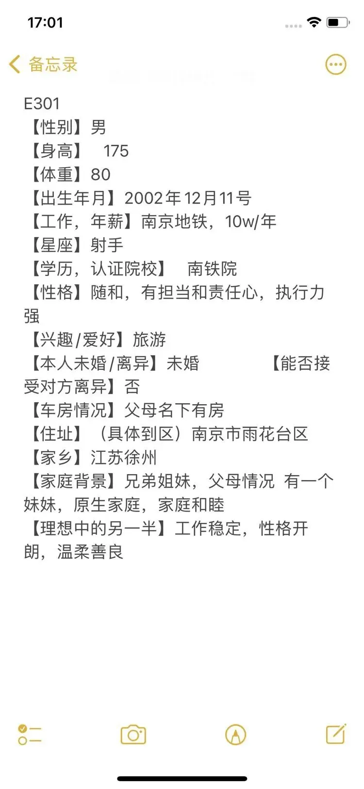 当前位置:首页>南京>南京相亲|2002年,男,身高175,南京铁路学院毕业,南京地铁工作,年薪10万,徐州人在雨花台区