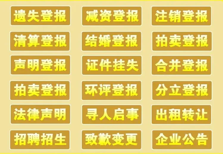 更值得一提的是,南京自助登报的服务范围远不止于遗失声明。从温馨的结婚登报、生日祝福,到严肃的招聘招商、企业推广、软文发布;从复杂的注销清算、减资环评,到专业的拍卖合并、分立辅导,乃至法院送达公告、债权公示等各类法律事务,我们皆能一站式搞定。“孑然一身,萧然四壁”,古人虽能以冷淡成愁而不以寂寞生悔,但今人办事讲究效率与周全。选择南京自助登报,便是选择了专业与安心。