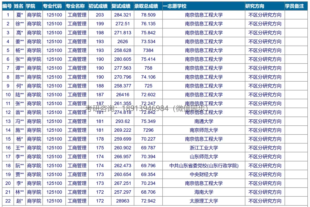 >2025年南京信息工程大学(非全MBA考研)录取分数和名单