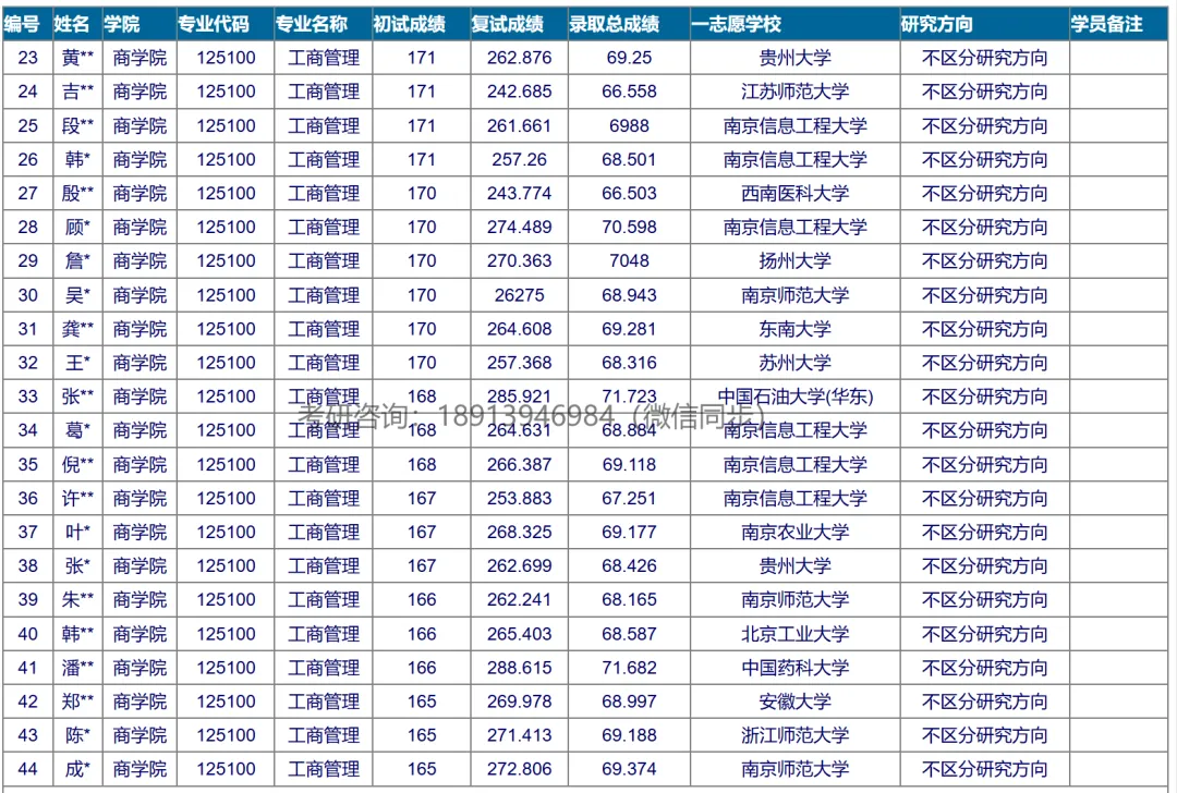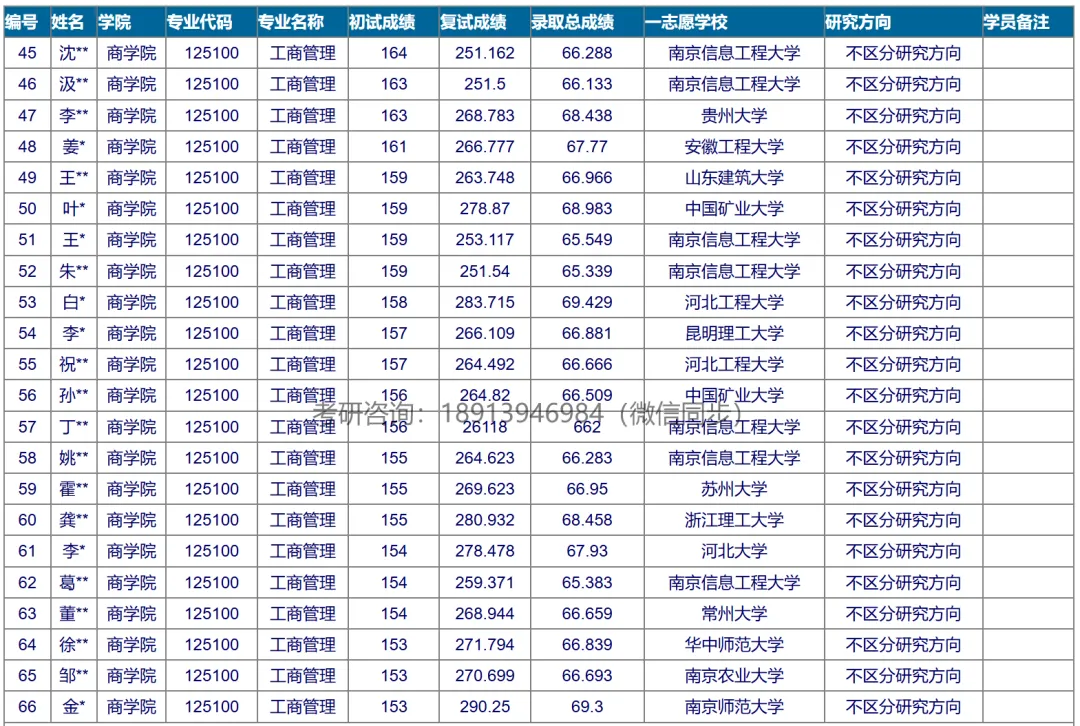 (非全MBA考研)录取分数和名单