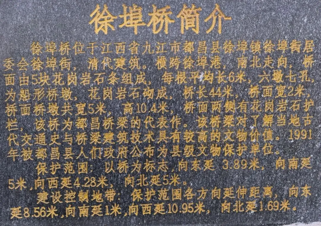 半天时间在都昌县的乡镇间穿插,去了赣北地区难得一见的石树围屋,寻完名声在外的刘溉鼓楼。本打算去湖口地界寻找当年陶渊明“日驻彭泽,夜宿东流”时的彭泽古县衙遗址。不小心被路旁一个“徐埠古镇”的牌子所吸引,好吧,既来之则安之,到徐埠古镇一游。首先映入眼帘的是县级文保单位—徐埠桥,除了两边的扶手是后期修建,桥墩、桥面部分都是古色古香,桥面算不上宽,但桥墩的跨度很大,桥面条石平均每根有6米长,这跨度很有点摄人心魄的味道。走在桥上,我猛然想起了泉州的洛阳桥,也是用这样的大条石,工程量巨大。