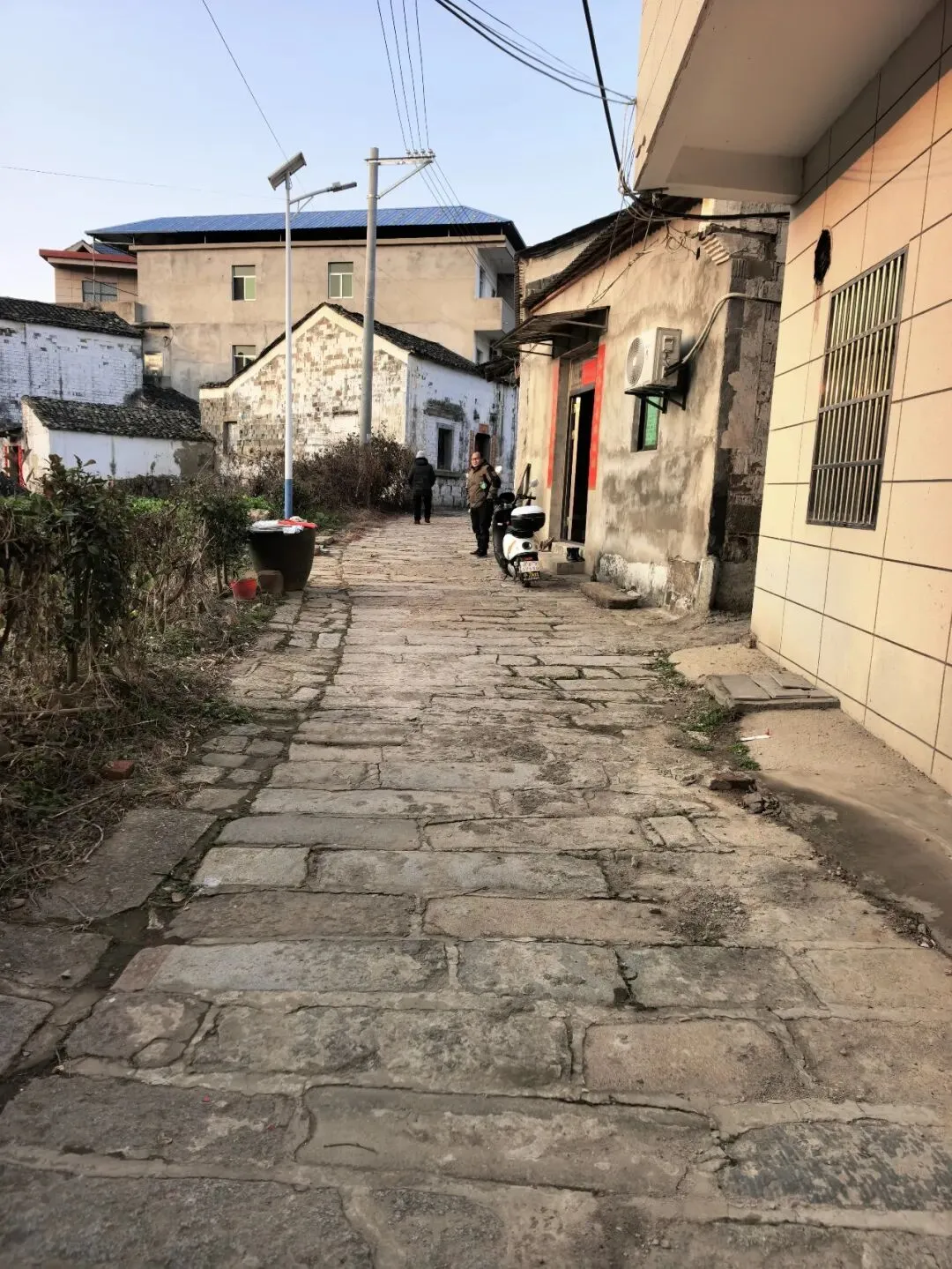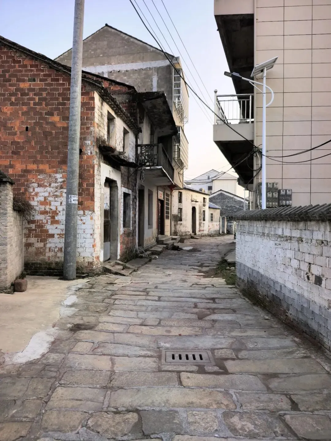 寻找古镇的古建筑可谓一波三折,问了三四个人都没讲明白,大概意思是在河边,我们来回兜兜转转都没有收获,估计拆的差不多了吧。抱着最后一线希望走到徐埠河转弯处,左边一条石铺路面展现出来,星星点点的老房子分散在窄窄的老街两侧,那一刻最大的感受就是,还得要坚持啊。