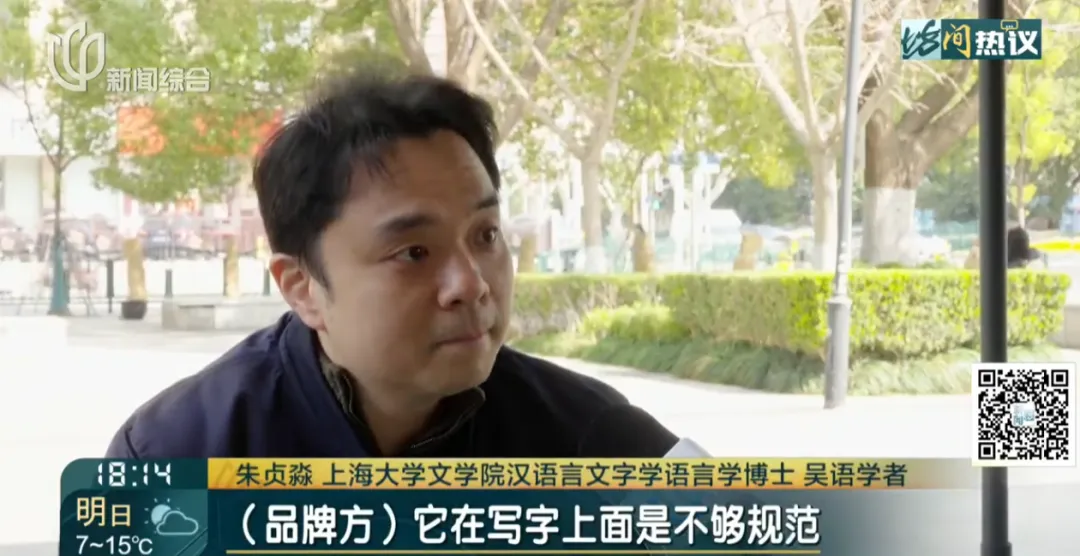 (品牌方)在写字上面是不够规范,我们上海话有自己规范的写法的,比方说人的眼睛,我们写下来就是眼睛,但是他写的是"乃";如果用普通话读的话,这个"乃"就是和上海话里困难的“难”同音,它其实并不能正确的表音。