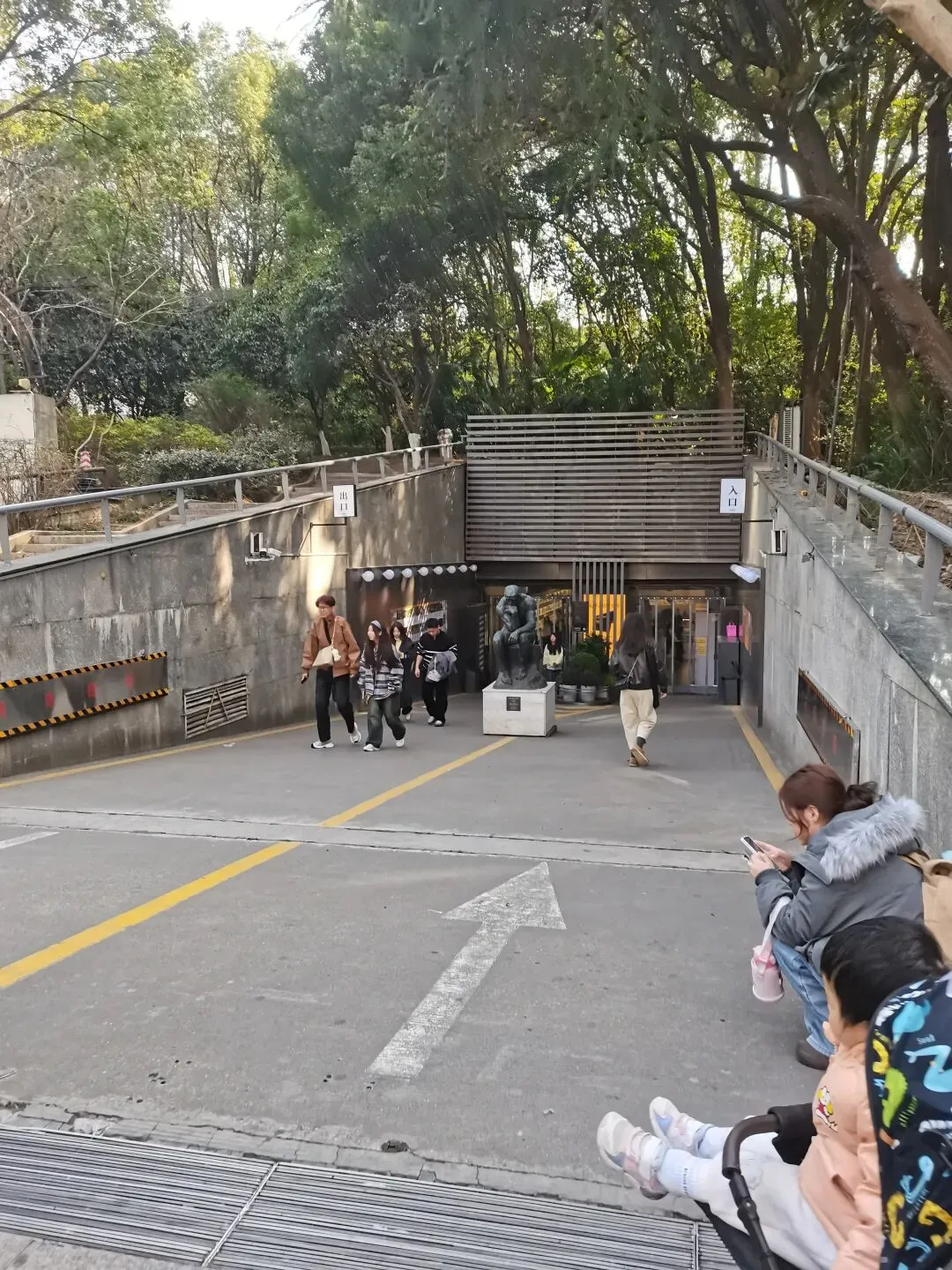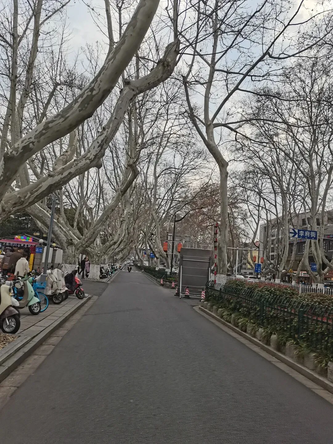 打车几分钟的路程便到了预定的民宿,旅店正好住在玄武湖旁边,上午把行李安顿好,洗漱,整理,吃午饭,再稍作休息一下,下午2点钟便开始了南京市区的旅行。我们在民宿附近的公交车站坐73路去先锋书店。这一路上,扑面而来的是与广州截然不同的空气,这里不像北方温带季风气候完全看不到绿叶,又不像广东海洋性气候四季常绿,这里既有绿叶,也有落叶,有许多好大的树木是一丝不挂,但也有不少矮小的植被依旧保持苍翠。我发现南京市区里的楼房不算高,整体色彩大多偏朱红和褐色,时不时还能看到一些民国时期留下来的老建筑,每当我们行走在老城区的大路上时,眼前远处的建筑群和蓝天透过密密麻麻的树枝,在背后隐隐约约、朦朦胧胧地变换着,让这个古老的城市多了几分面纱感。