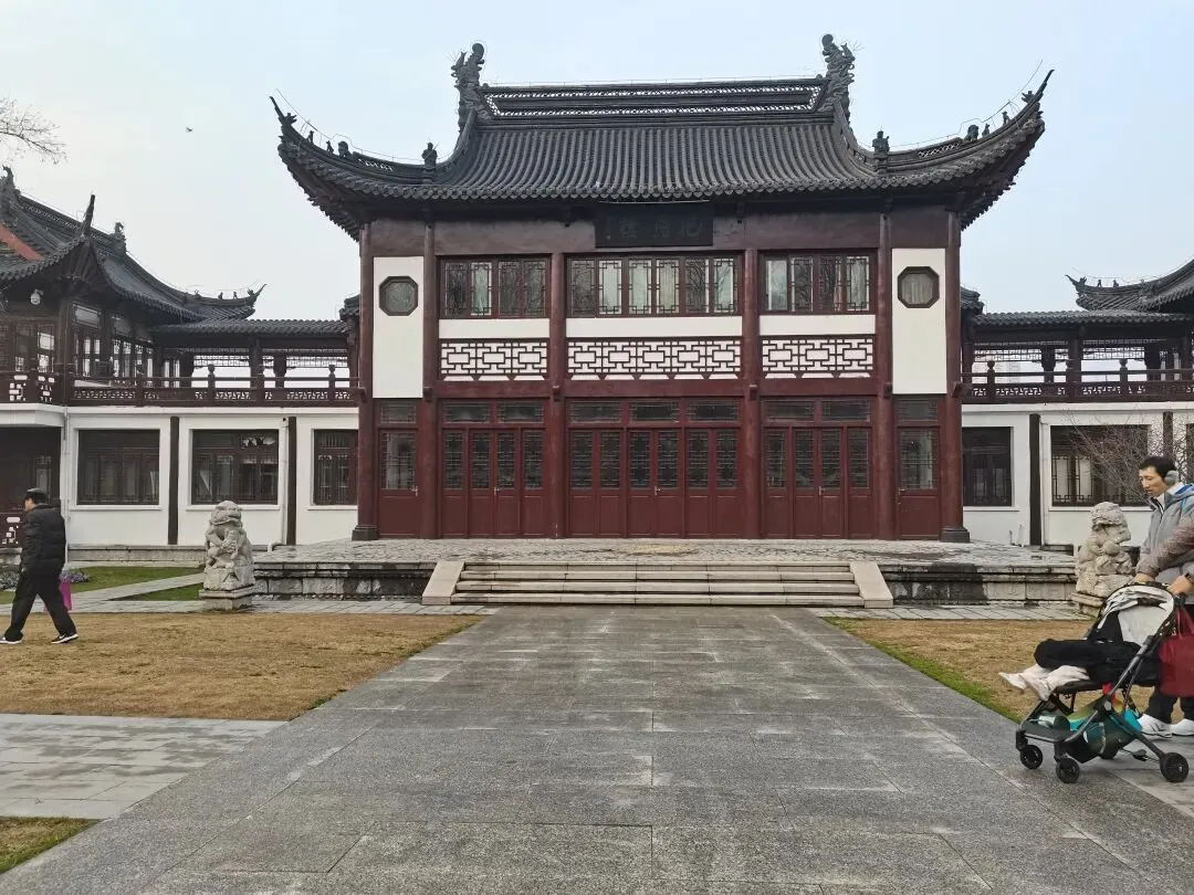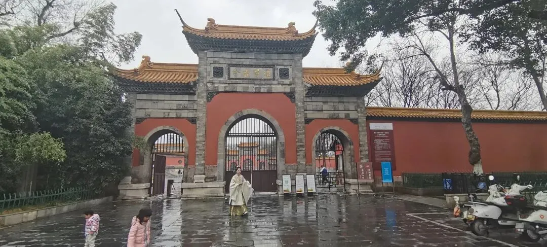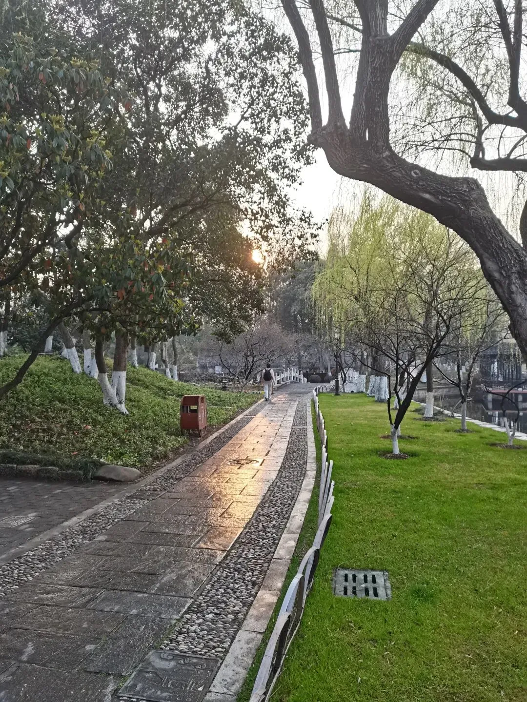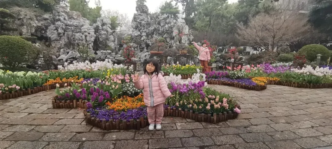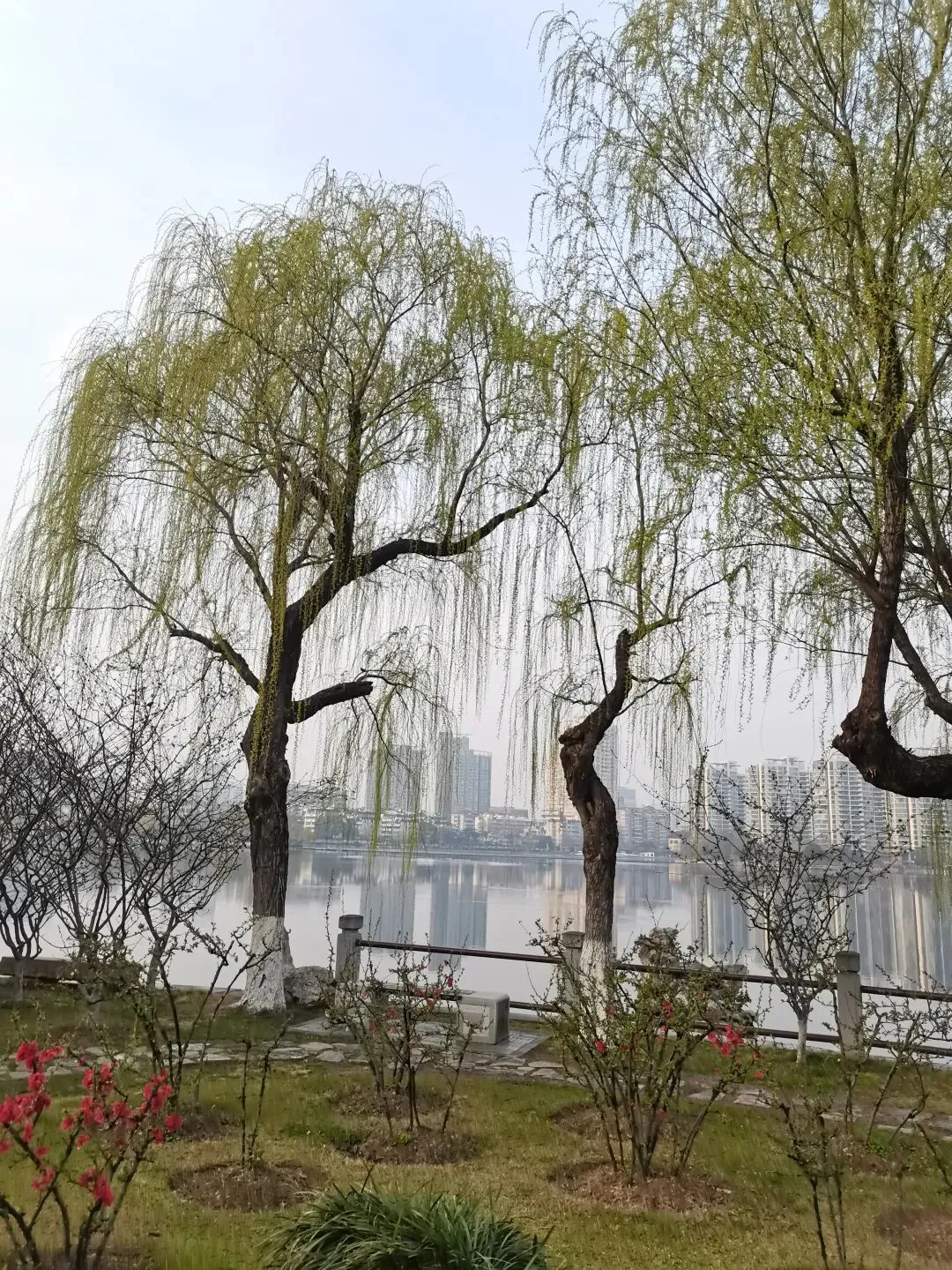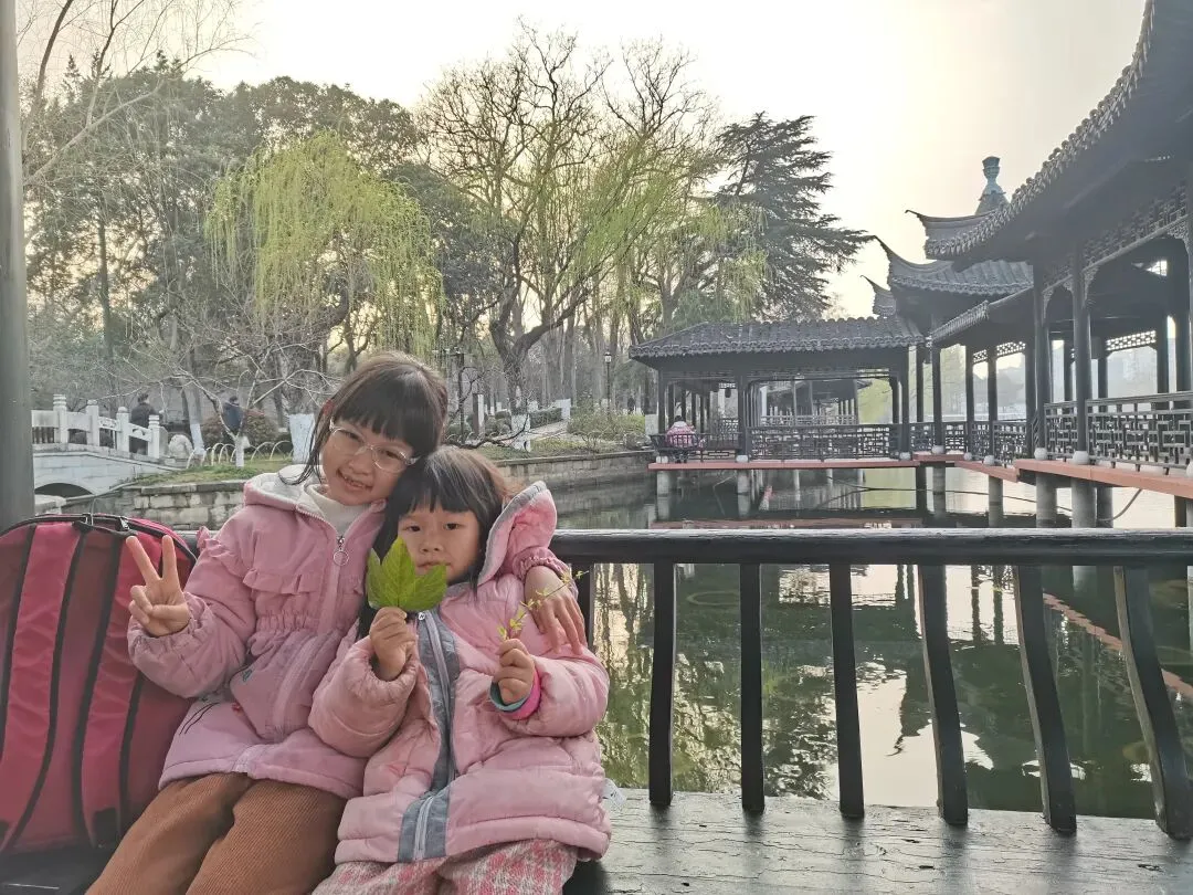 下午吃完午餐,天气阴沉,居然下起了小雨,我们很开心地在餐馆里闲聊,等待雨停,幸亏餐厅空间大,过了用餐时间客人稀少。几个孩子在里面跑来跑去玩得起劲,不至于无聊。一小时后雨渐停,我们再次出发,在附近的朝天宫参观一下,又坐公交去了好友推荐的莫愁湖公园。我不由地感慨,这两天终于去到了一个人烟稀少的景点,在这个精致美丽的公园里欣赏充满江南特色的园林景致,春日里争奇夺艳的花团锦簇,还有各样的小动物:飞鸟,野猫,大白鹅,水鸭等等,与我们一同享受着3月南京那沁人心脾、湿润温和的雨后空气,步行在视野广阔的莫愁湖边,头顶到处是翩翩起舞的轻盈柳条,真是叫人心旷神怡,流连忘返。