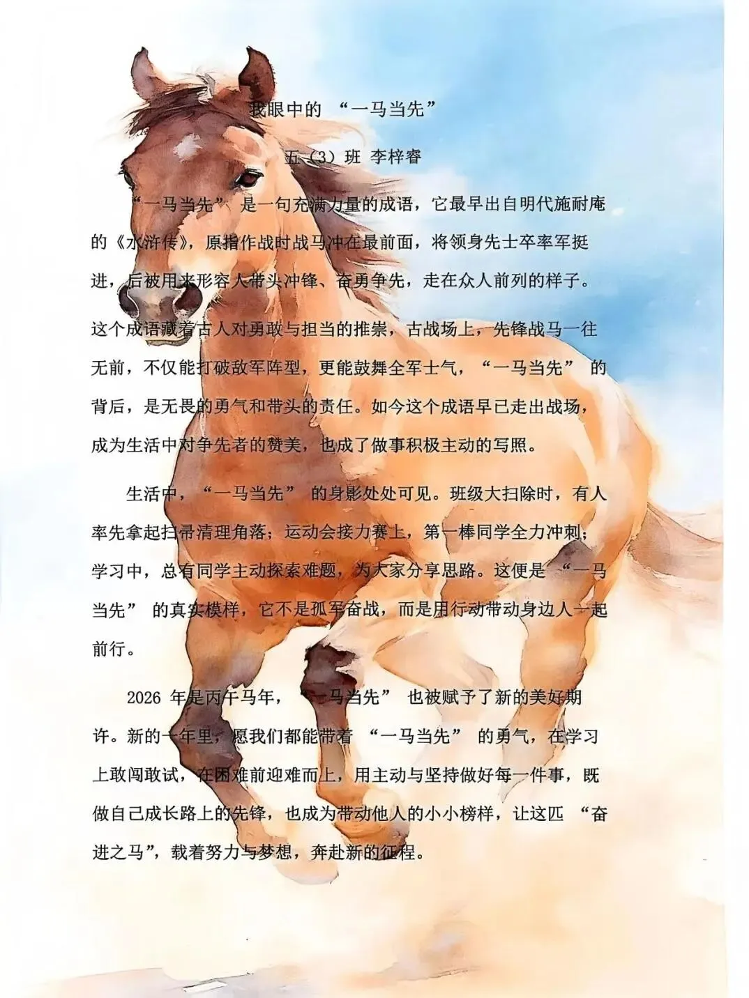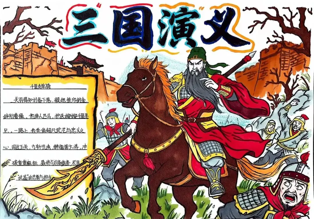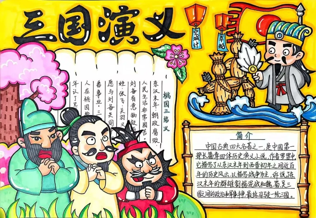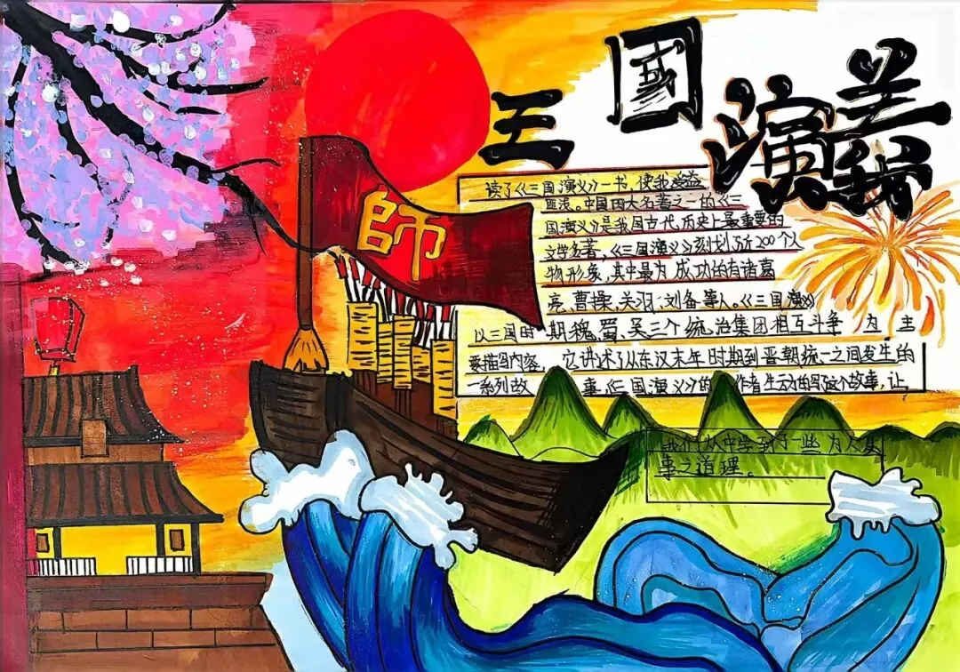五年级的同学们以《三国演义》为载体,画出了诸葛亮、关羽等经典人物形象,用文字梳理精彩战役与人物故事。在阅读与创作中,他们感受着乱世英雄的豪情与智慧,在历史故事里涵养家国情怀,提升文学素养。