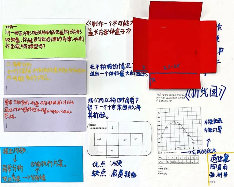 数学探究课该如何落地?南京赫贤学校赵亮老师以 “制作尽可能大的无盖长方体盒子” 为载体,用三课时打造了一堂充满认知冲突的深度探究课。从生活问题抽象为数学优化问题,从方案博弈到数据建模,从实操探究到成果思辨,学生在动手、争论、试错中亲历完整科学探究循环。这节课堂打破传统灌输式教学,让数学从公式变成可探索的思维旅程,更让学生在认知碰撞中建构建模思维、工程权衡意识与系统思考能力,为数学综合实践课提供了生动的实践范本。一、教学背景与设计理念在传统数学教学范式下,学生往往被置于被动接受的地位,其学习过程主要表现为对既定公式的记忆、对标准算法的模仿以及对封闭性问题的求解。这种教学模式虽能高效传递知识,却难以培养学生将真实世界复杂情境转化为可分析、可建模的数学问题的能力,亦难以引导他们经历从模糊感知到清晰定义、从直觉猜测到系统验证、从孤立操作到整体反思的完整认知历程。有鉴于此,本研究秉持“发现数学”的教学哲学,坚信数学不应是被灌输的结论,而是由学生在真实问题的驱动下,通过主动探究、试错、辩论和重构而“自己想出来”的思维产物。选择“制作尽可能大的无盖长方体盒子”作为教学课题,正是为了搭建一个理想的“发现”平台。(研究过程梳理)