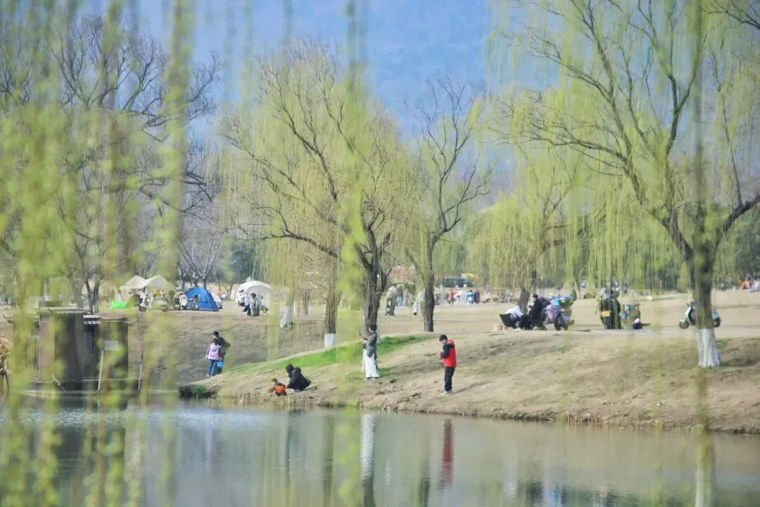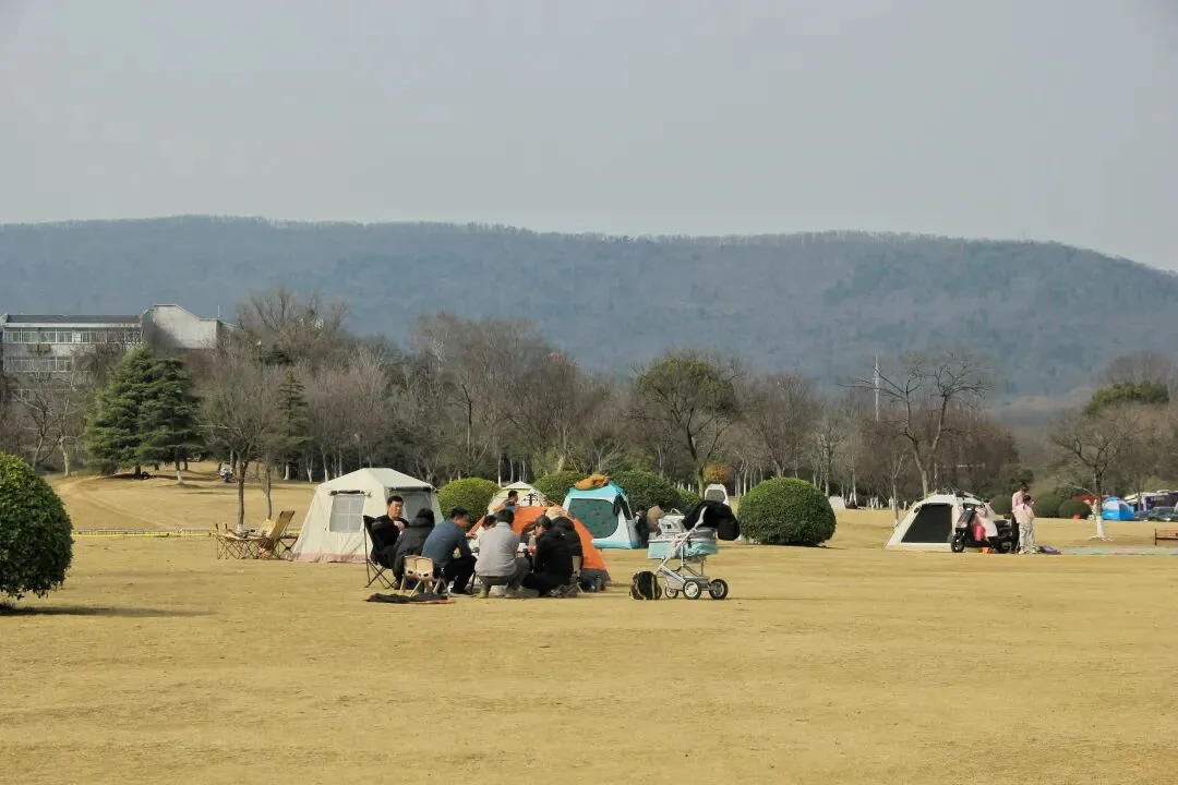 露营、散步、遛娃、遛狗的到处都是。