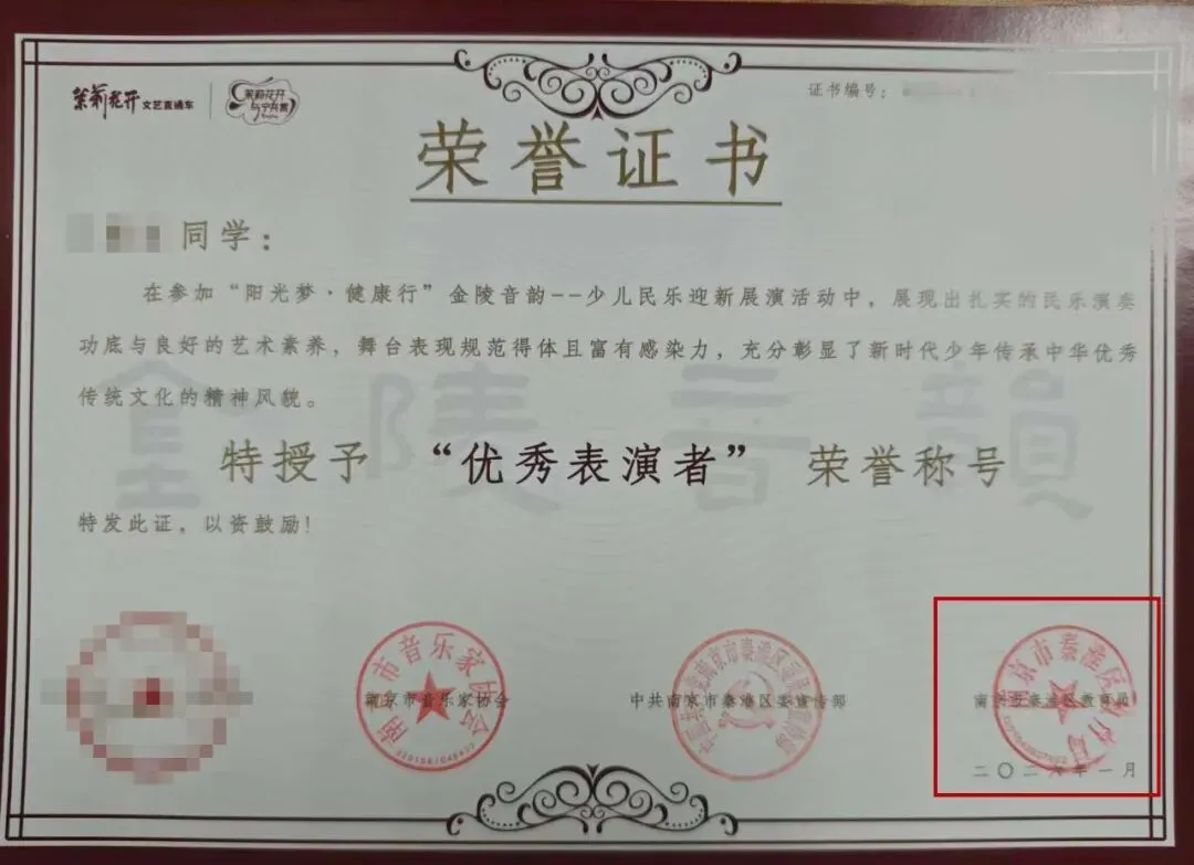 例如:“我的中国梦”、“金陵音韵”少儿民乐展演、“童眼里的英雄赞歌”藏书票展等活动(PS:纯公益免费),均由教育行政部门盖章认证,证书完全符合学校招生要求,为孩子升学助力!证书不是升学的“免死金牌”,但它是孩子综合实力的官方认证。 在南京现行的教育政策下,区教育局和市教育局的展演证书,是连接孩子特长与升学通道的合规桥梁。 它不能保证你“免试入学”,但能让你在特长生报名时拥有资格,在综合素质评价中拥有亮点,在校内资源竞争中拥有底气。