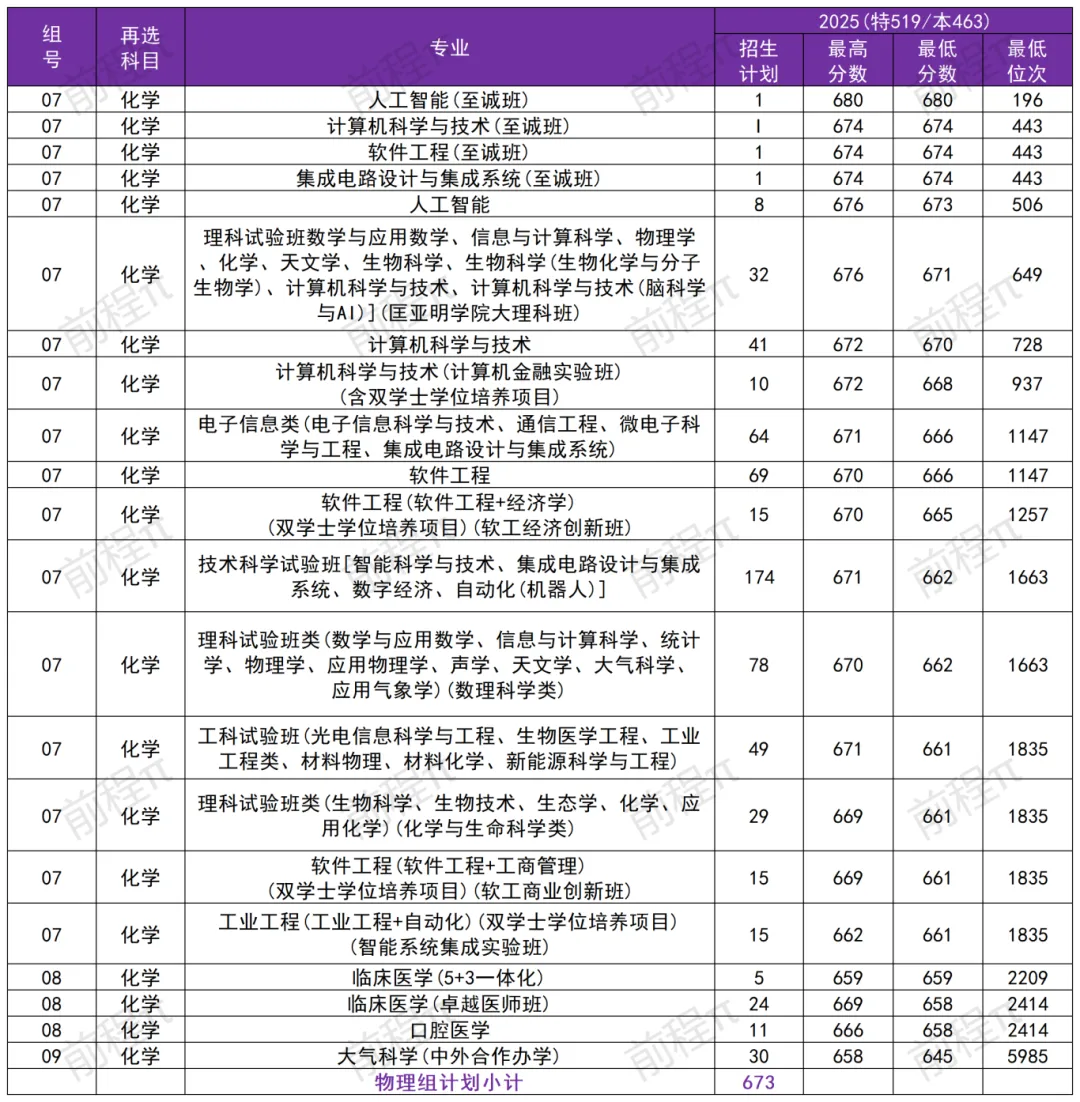专业录取分最低的是大气科学(中外合作办学),分数是645分;专业录取分最高的是人工智能(至诚班),分数是680分。