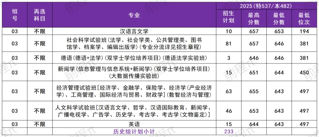 专业录取分最低的是英语,分数是643分;专业录取分最高的是汉语言文学,分数是657分。