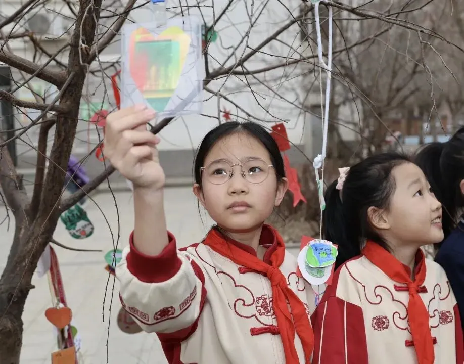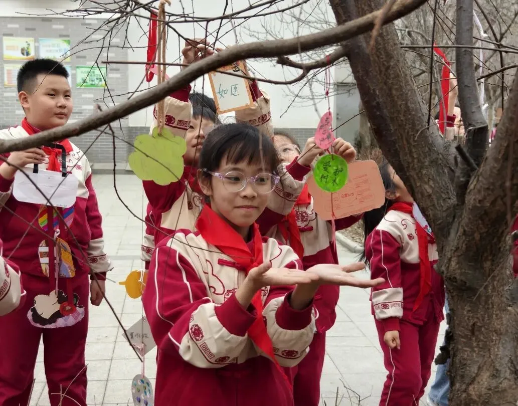 学校将劳动教育融入护绿全过程。孩子们通过悬挂心愿卡、养护校园绿植、维护绿化环境等实际行动,亲身参与绿色实践,在动手操作中体验劳动价值,感受劳动乐趣。