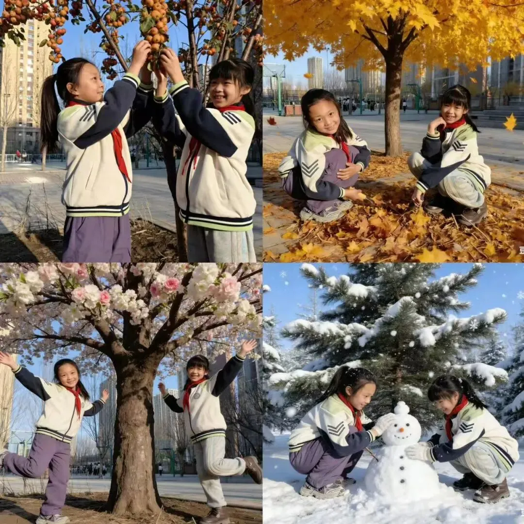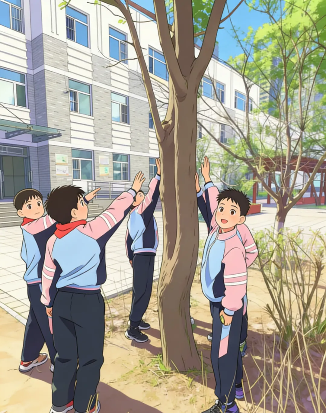 结合学校“小科学家”办学特色,本次活动融入科技元素,让智育与自然教育同行。同学们化身“小小科学家”,借助 AI 绘图、图像生成等技术,将科技创意与四季更迭、植树场景相结合,既定格校园四季美景,又把春日植绿的美好瞬间绘制成童趣漫画,在校园里种下一棵棵承载智慧与希望的“科技树”。