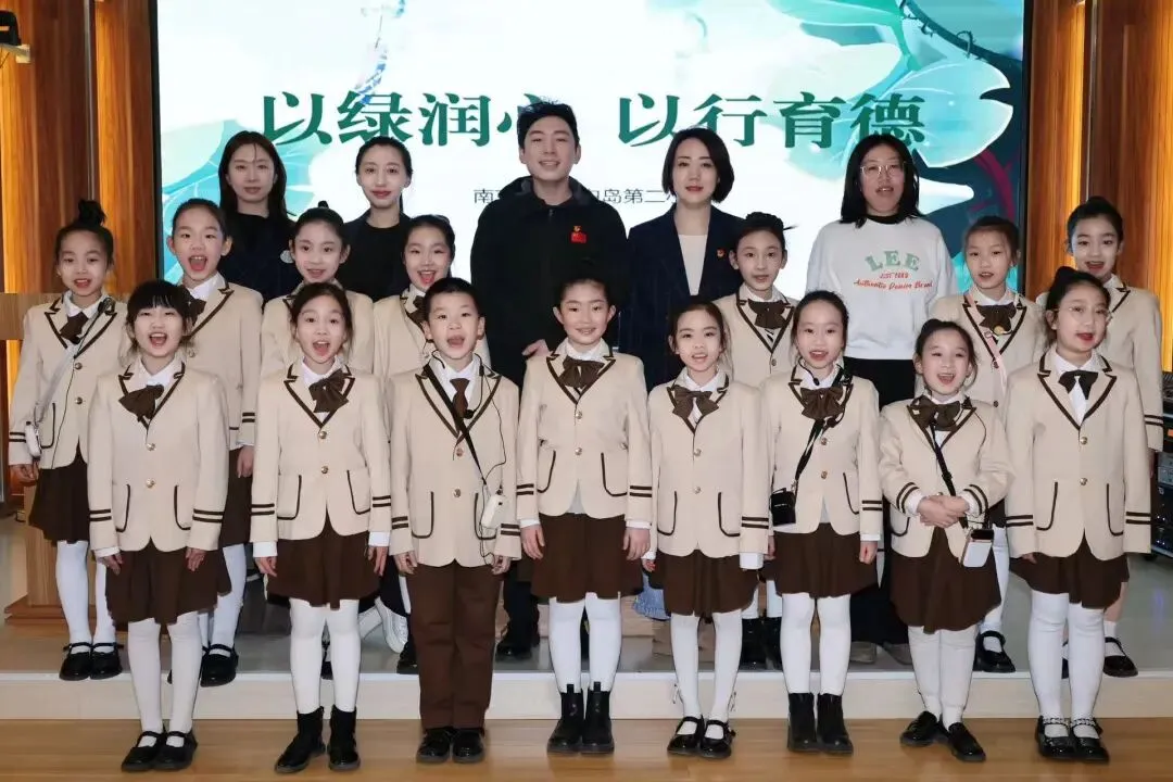 春染大地,新绿初绽。植树节到来之际,南京一校长白岛第二小学隆重开展“以绿润心,以行育德”主题活动。此次活动以德育为引领,以五育融合为路径,学校特邀辽宁省优秀少先队辅导员、“最美沈阳人” 宋世辉同志进校园,与全体师生一同爱绿、护绿,将生态文明实践与五育深度结合。本次活动由德育主任李依纯主持。