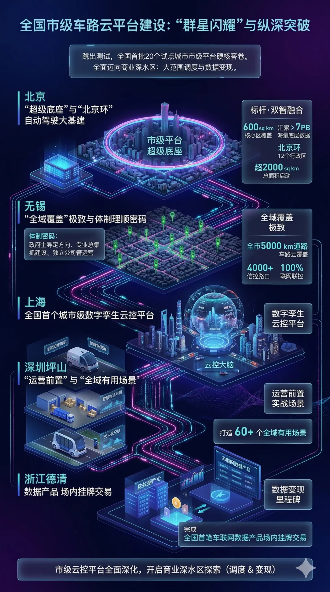 这些国家级试点的狂飙突进说明了一个事实:市级云控平台已经彻底跨过了“能不能建”的技术验证期,全面迈向了“如何大范围调度、如何数据变现”的商业深水区。