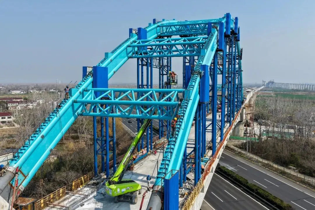3月10日,由中铁四局承建的宁淮城际铁路跨南京绕城高速双线156米连续梁拱主体结构施工已基本完成,为全线贯通奠定坚实基础。