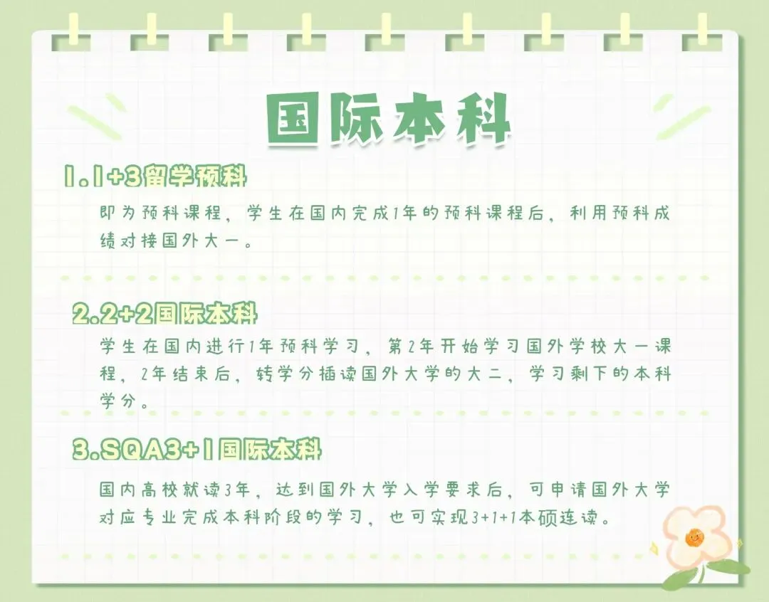 本项目的学生需参加国内和国外两个阶段的学习,这样的方式有利于学生的全面发展,与传统的本科教育相比,这种国际本科培养方式在教学体系、学习模式、文凭认证等方面具有开放性、国际化的特点。报考国际本科,一方面可以享受国内重点大学的优质资源,另一方面可以在海外名校继续深造,获取高含金量国际文凭。同时,国际本科跟高考后直接出国相比较,所需的费用也明显降低。