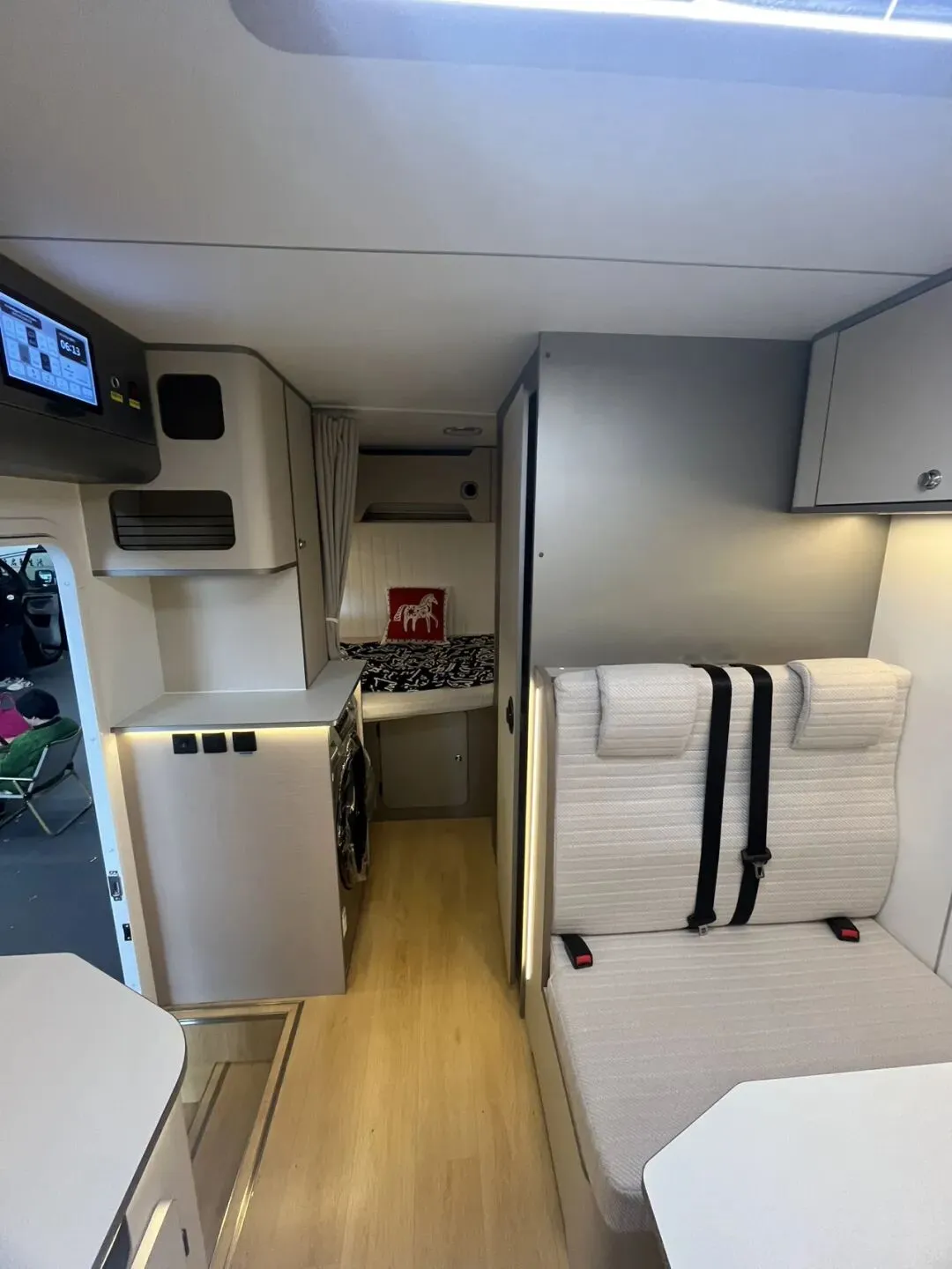 走进车内,你会发现驿舟设计师的“空间魔术”。贯穿式内部布局,空间利用率比传统房车提升约20% 。它不豪华,但洗衣做饭洗碗上厕所等日常生活必备的,全够用!