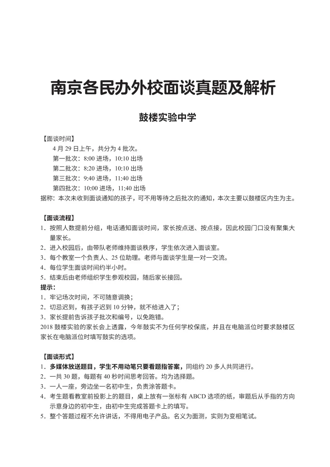 参加过鼓实面测的家长们反映,鼓楼实验一般会看重具有以下素质的学生: