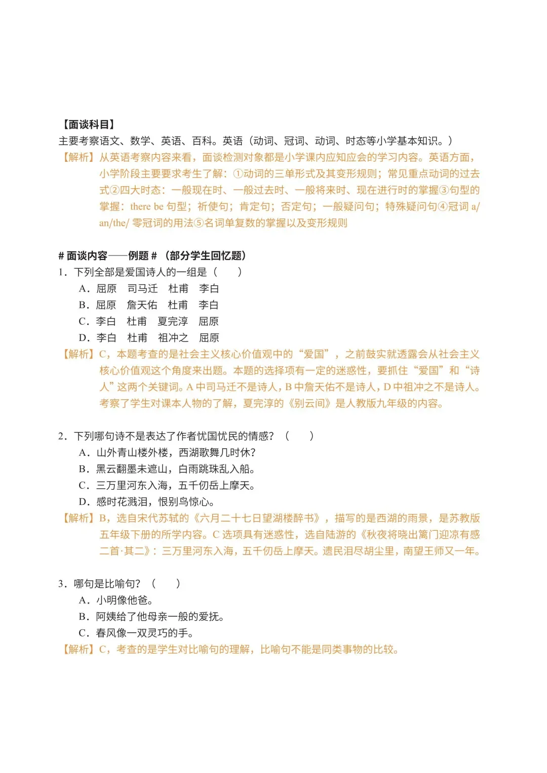 主要考察语文、数学、英语、百科。英语(动词、冠词、动词、时态等小学基本知识。)