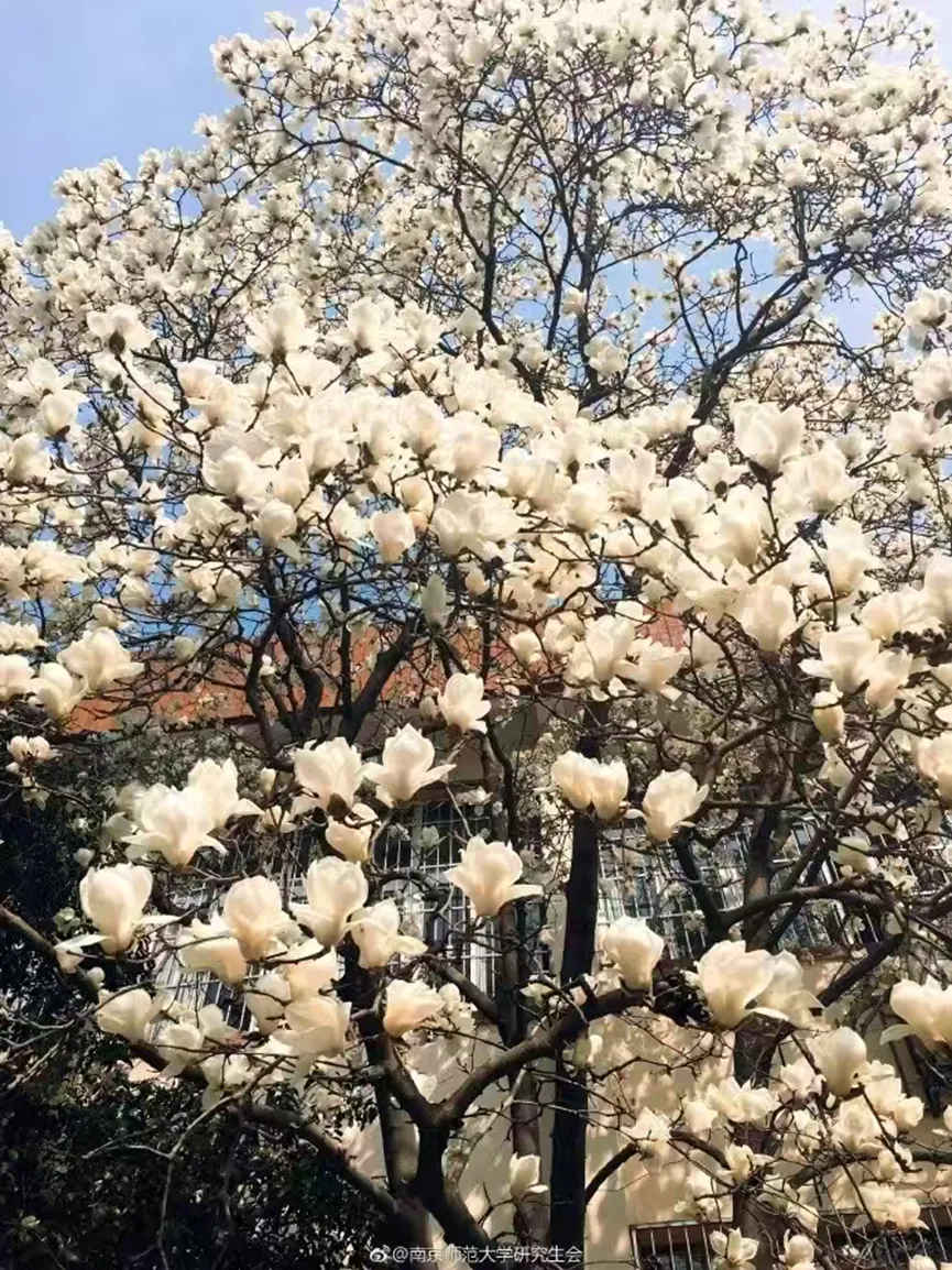 南京师范大学随园校区玉兰花盛放,占尽了春的颜色,推开窗户的那一瞬间,人的心为之颤动,东方最美校园名不虚传。