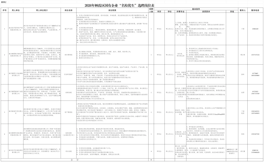 2. 2026年栖霞区国有企业“名校优生”选聘岗位表