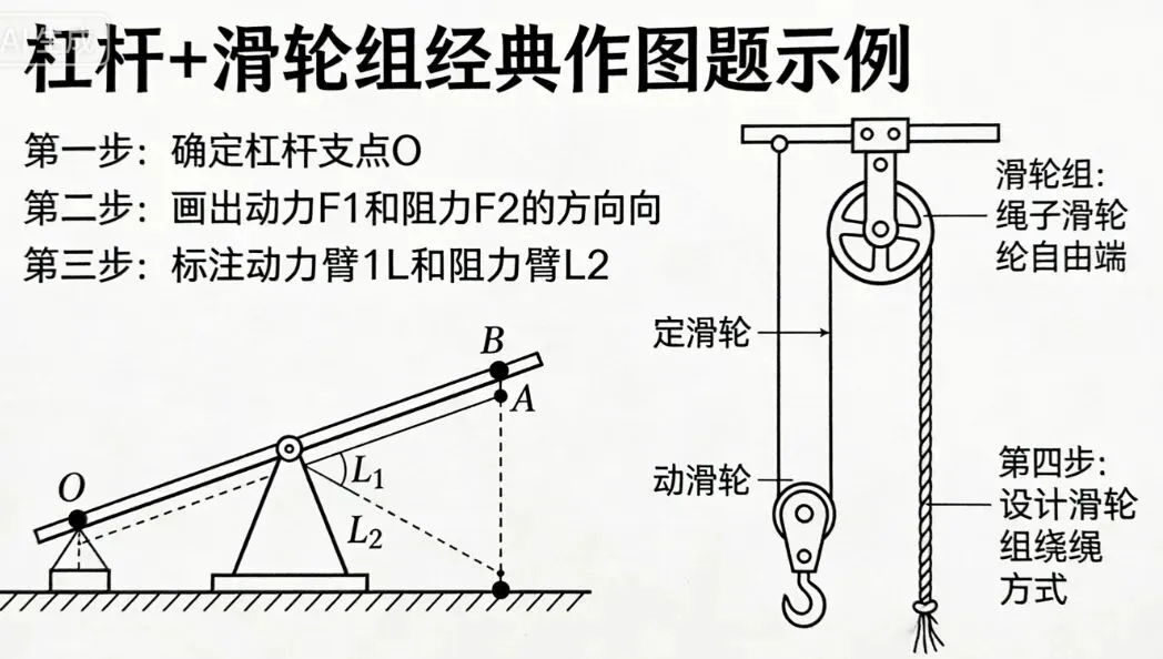 杠杆平衡:F₁L₁=F₂L₂