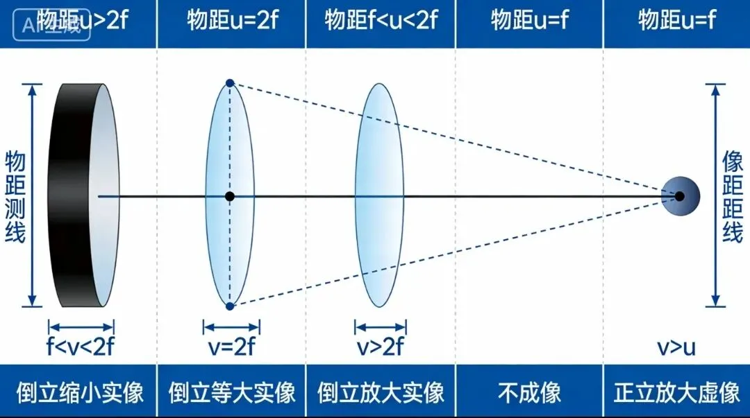 凸透镜成像:相机、投影仪、放大镜规律