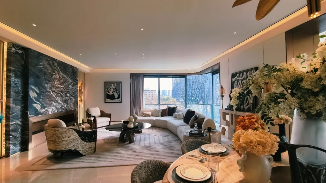 而goa设计笔下的建筑曲线已自成艺术品——嘉佰道·长风的弧线立面藏着韵律感,大落地窗框住缓缓流淌的苏州河景,与长风绿意互文。