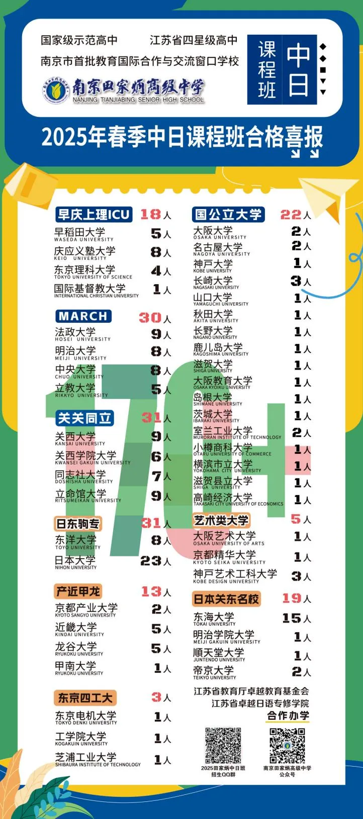 请大家一览田高中2025年的《中日班名校录取榜》。