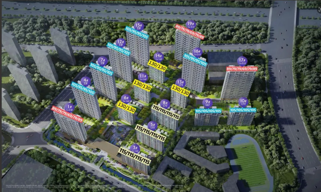 产品:17 栋住宅(9 栋 16-17F 小高层 + 7 栋 32-33F 高层)