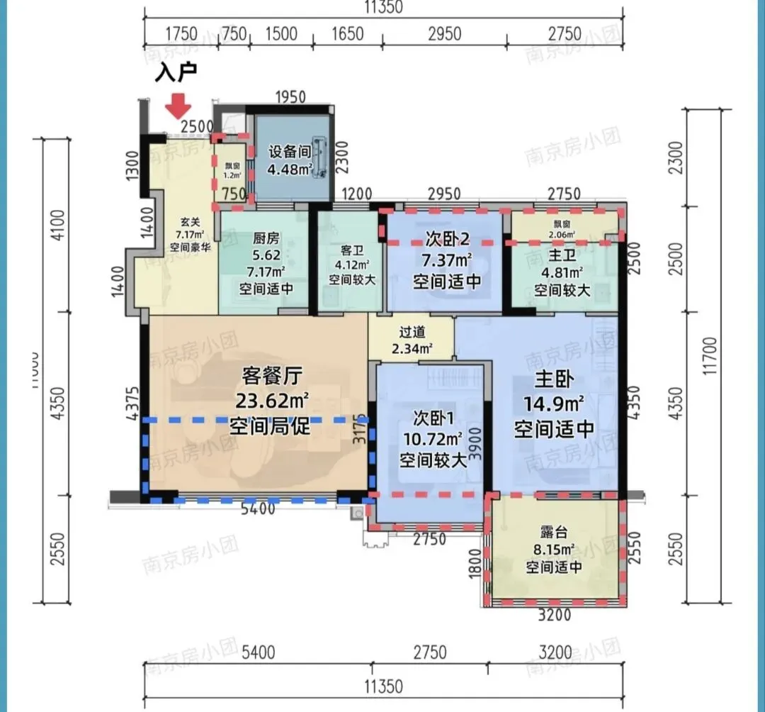 面宽:南向总面宽约 10.8 米|客厅面宽约 5.4 米