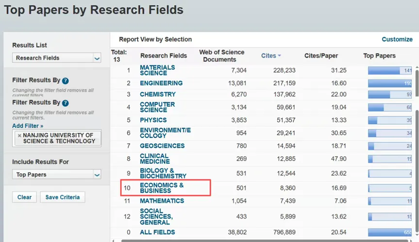 目前,我校有4个ESI前1‰学科工程学、材料科学、化学和计算机科学;12个ESI前1%学科:工程学、材料科学、化学、计算机科学、环境与生态学、物理学、数学、一般社会科学、生物与生物化学、地球科学、临床医学、经济与商学。