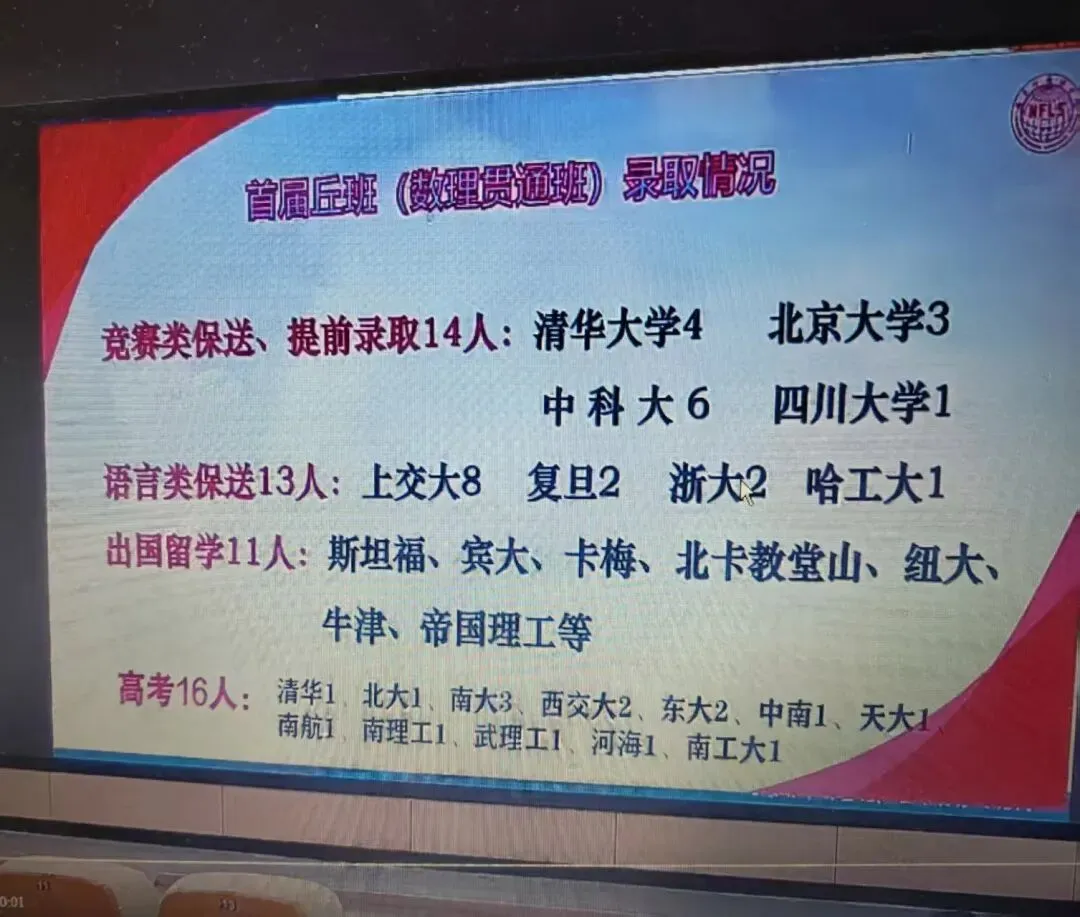 2025年南外首届丘班54人,14人通过竞赛类保送、提前录取;13人走语言类保送,出国留学11人,16人平优异的高考成绩上岸985/211大学。