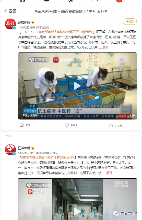 从7月20日以来,南京市中医院向全市各隔离点免费发放中药预防汤剂30余万份,隔离人员中医药使用率超过96%,为住院患者及陪护、社区居民免费提供防疫汤剂近1.5万袋。
