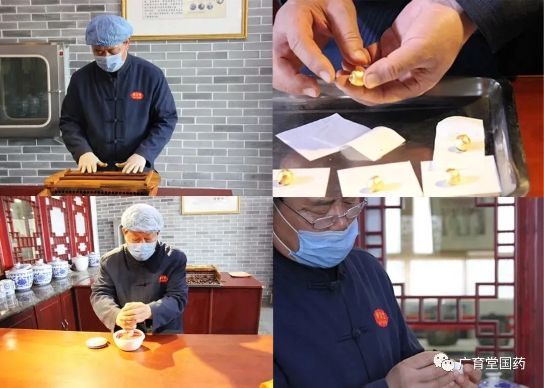 广育堂传承 440 余年,曾为宫廷供奉药材,一直遵循“广济世、育众生”的传世祖训。安宫牛黄丸采用传承技艺,遵古炮制,精制而成。整个制作均由经验丰富的老药工匠心制作。